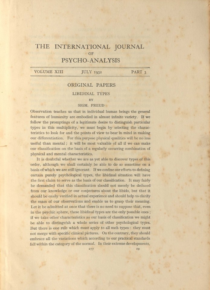 Freud, Sigmund | Riviere, Joan | 1931-001/1932.en | 10525 | Libidinal types | The International Journal of Psycho-Analysis, 13, 1932, 3 | 277–280 | Fertig ✔ | Fertig ✔ | Ganz fertig / zutreffend ✔ | Fehlt ✖ | Fehlt ✖ | Ganz fertig / zutreffend ✔ | ✔ | EB | ✔ | ||
