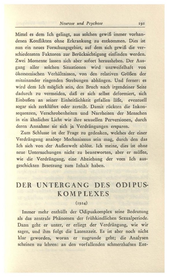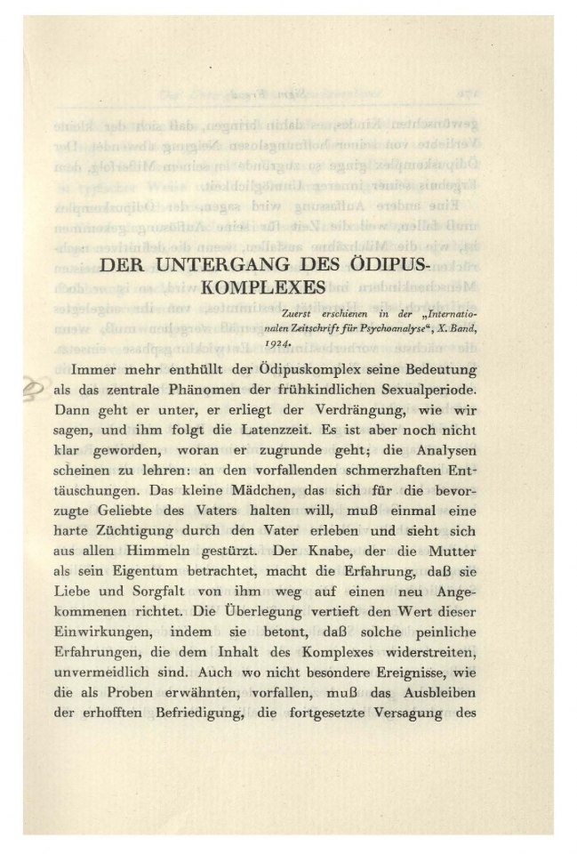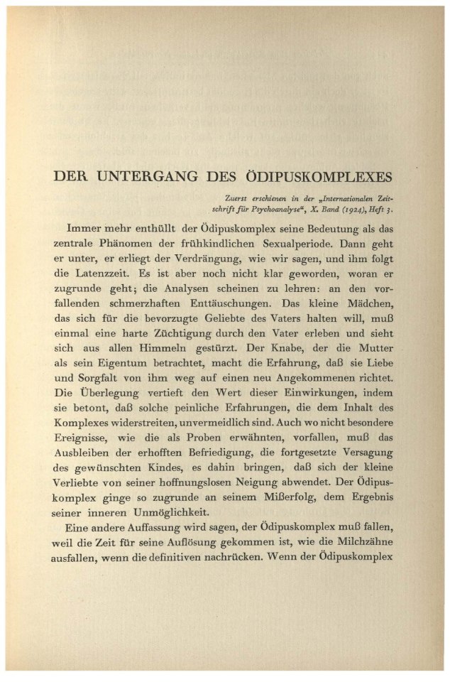 Freud, Sigmund | 1924-003/1972 | 1924d | Der Untergang des Ödipuskomplex | SA 5 | 243–251 | Fertig ✔ | Nicht erforderlich/ | Nicht erforderlich/ | Nicht erforderlich/ | Nicht erforderlich/ | Nicht erforderlich/ | ✔ | ✔ | ||||