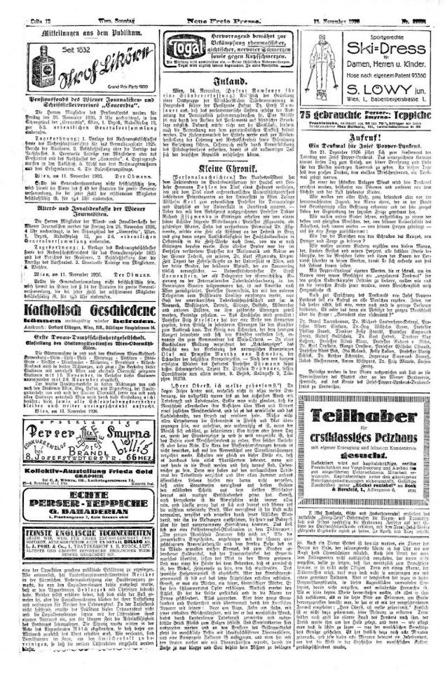 Freud, Sigmund 1926-052/1926.2 1926o 1926-11 Aufruf! Neue Freie Presse, 63, 1926, 22331 12 Fertig Fertig Ganz fertig / zutreffend Fehlt Fehlt Ganz fertig / zutreffend EB