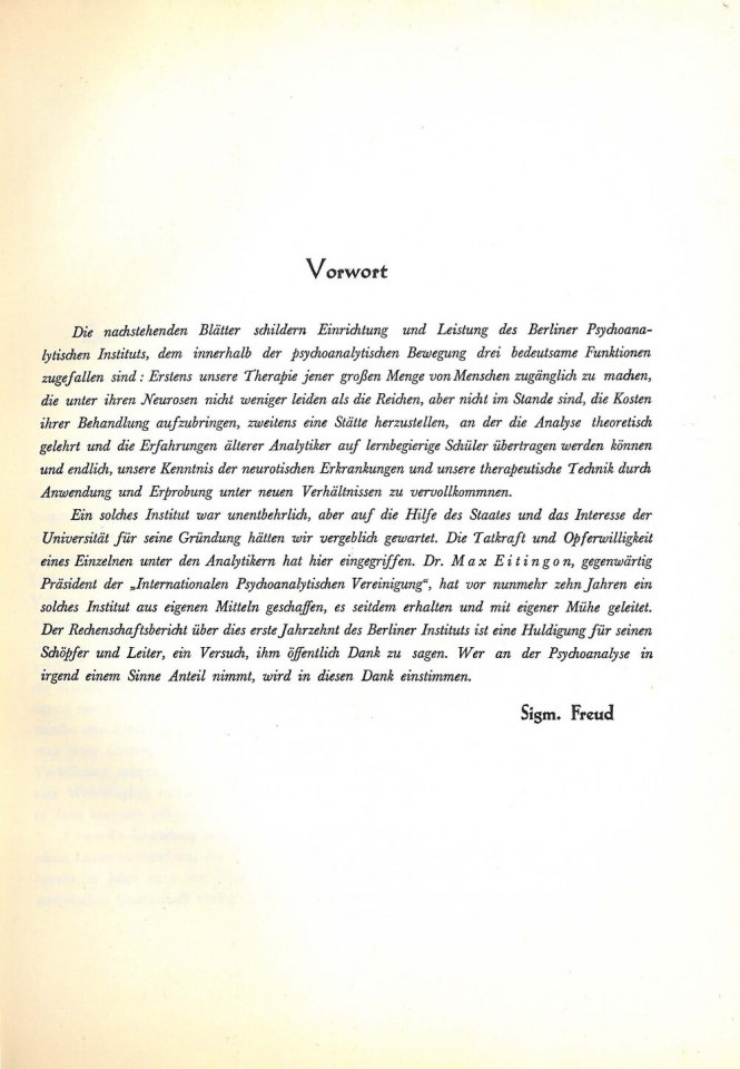 Vorwort [zu ›Zehn Jahre Berliner Psychoanalytisches Institut (Poliklinik und Lehranstalt)‹]
