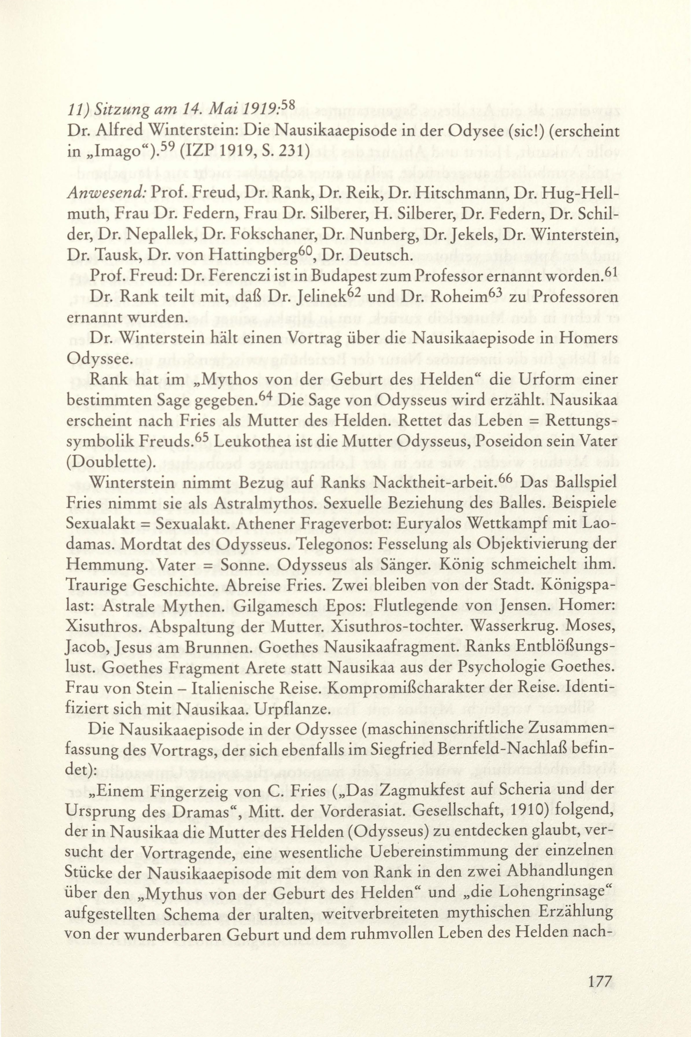 Anwesend: Prof. Freud, Dr. Rank, Dr. Reik, Dr. Hitschmann, Dr. Hug-Hell-