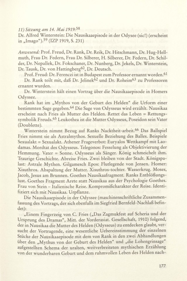 Dr. Rank teilt mit, daß Dr. Jelinek62 und Dr. Roheim63 zu Professoren