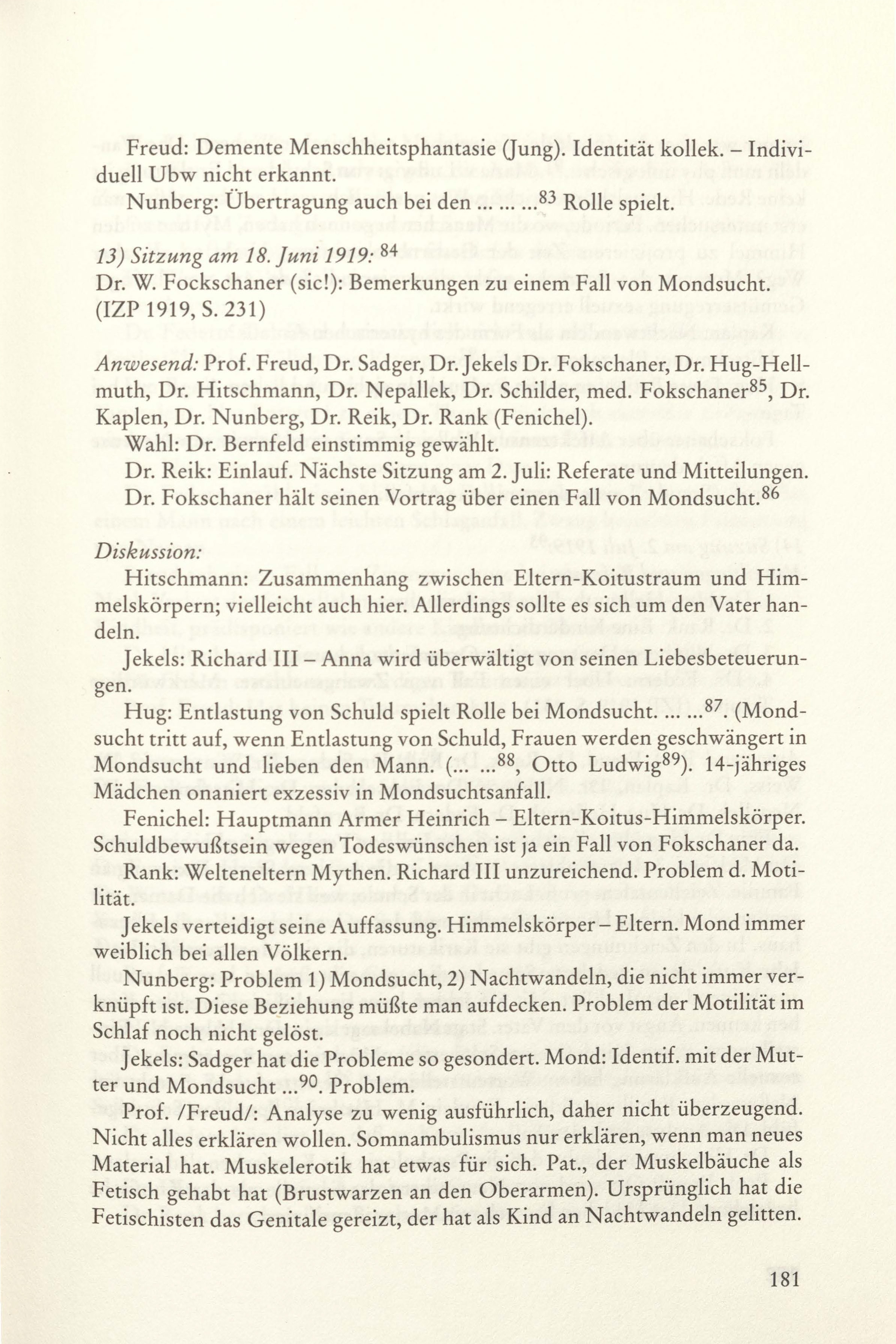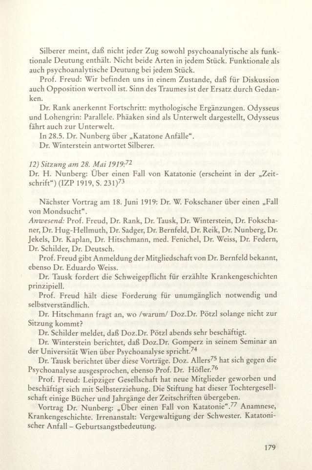 12) Sitzung am 28. Mai 1919. Dr. H. Nunberg: Über einen Fall von Katatonie 1919-511/1995