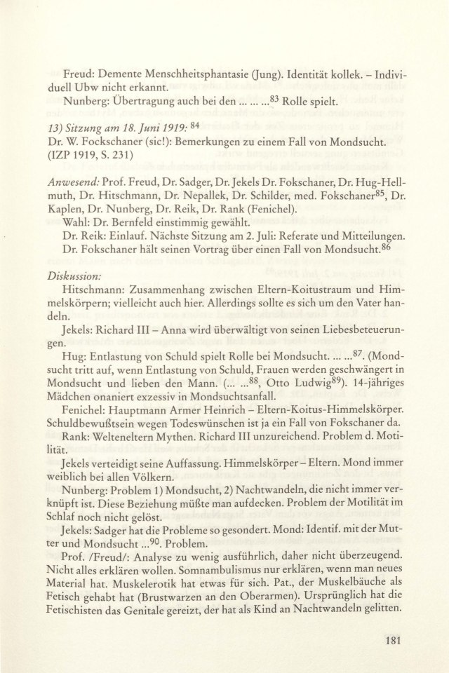 Anwesend: Prof. Freud, Dr. Sadger, Dr. Jekels Dr. Fokschaner, Dr. Hug-Hell-