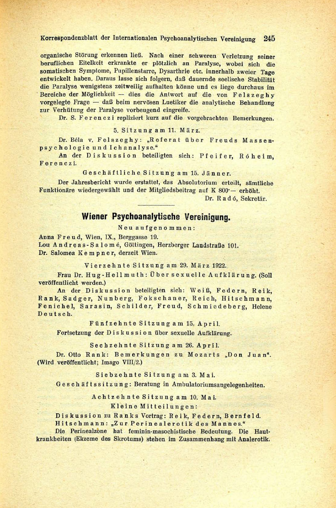 Korrespondenzblatt der Internationalen Psychoanalytischen Vereinigung 245
