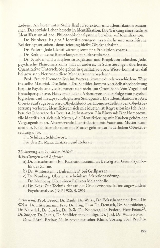 Dr. Nepallek, Dr. Storfer, Dr. Reik, Dr. Nunberg, Dr. Federn, Herr Peters24,