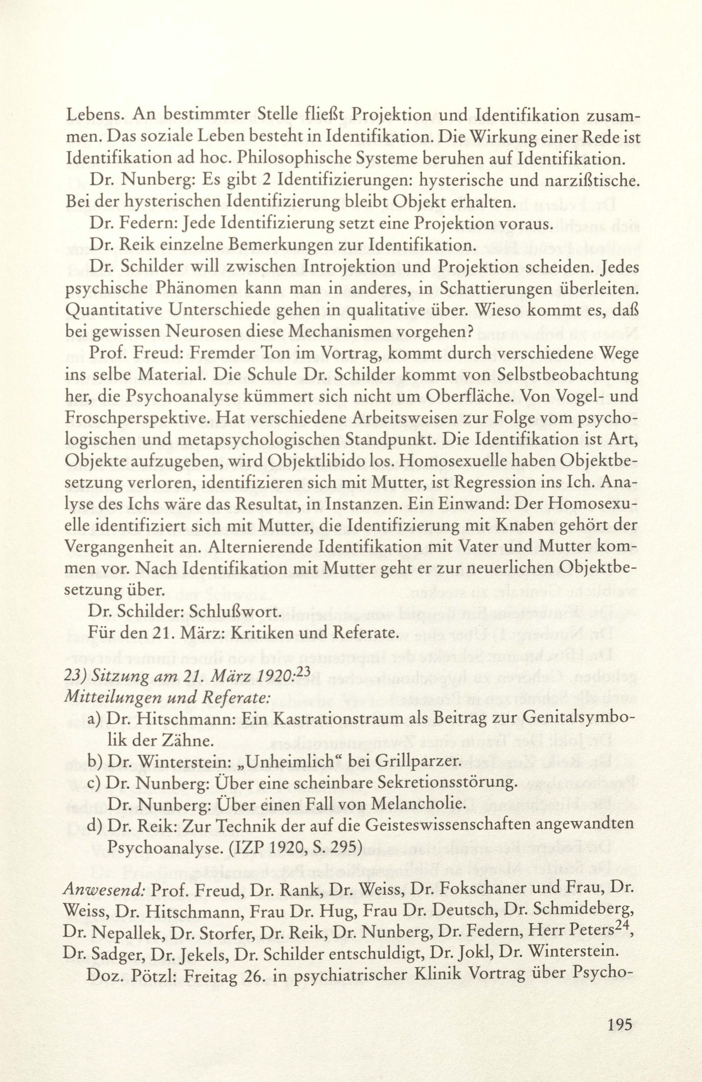 23) Sitzung am 21. März 1920: Mitteilungen und Referate