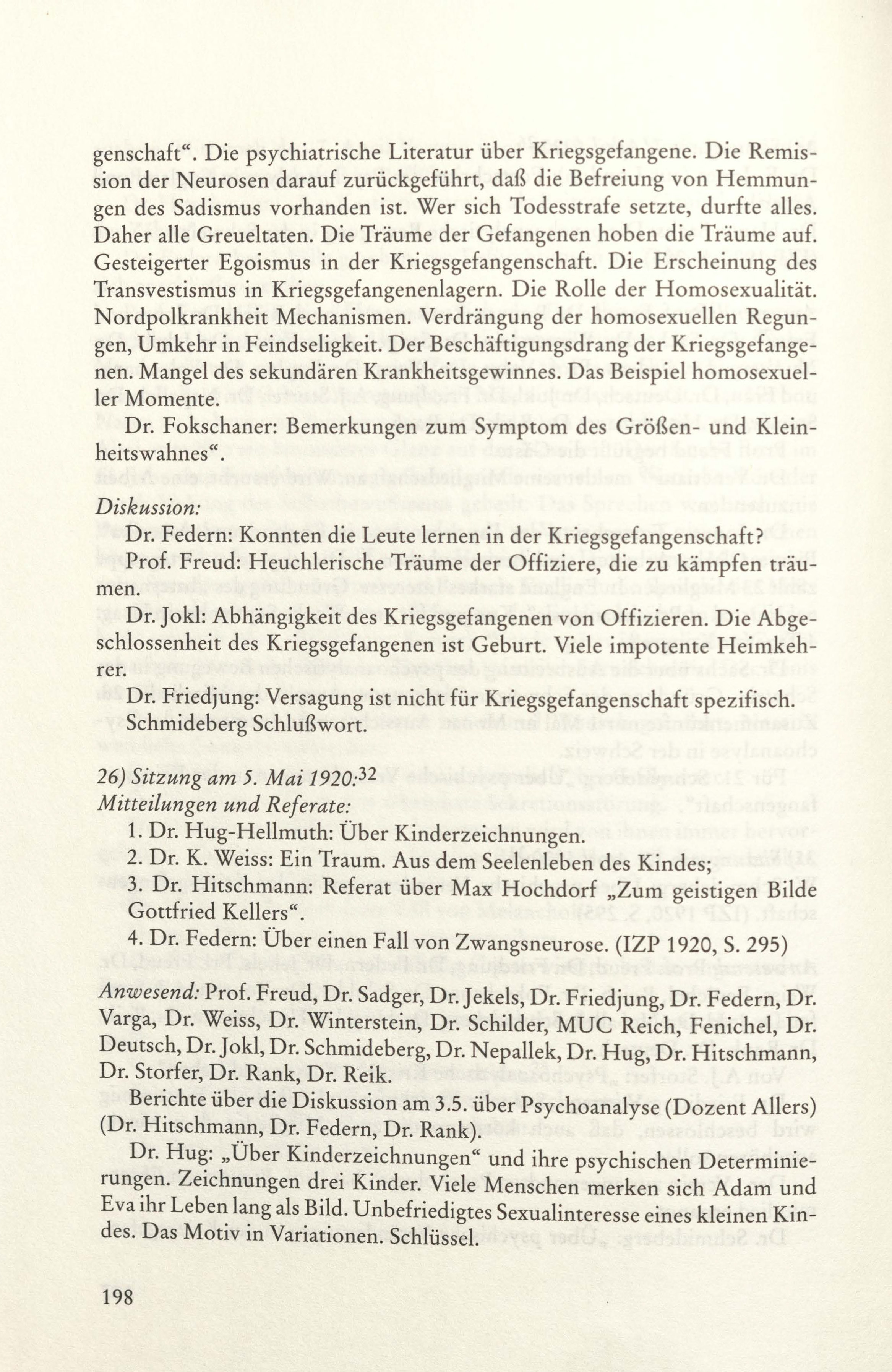 Dr. Friedjung, Dr. Hug, Dr. Federn über dieses Thema.