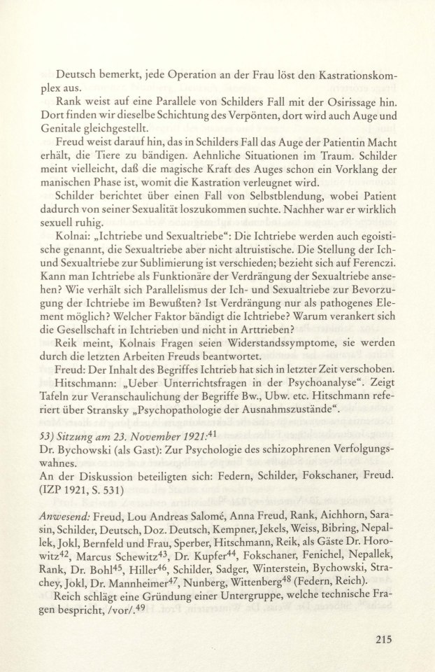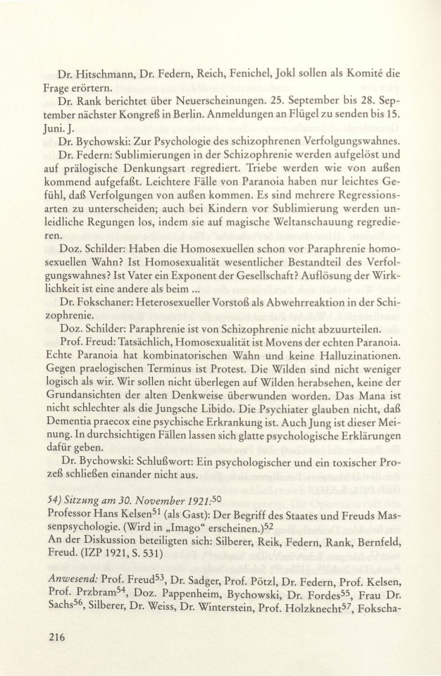 53) Sitzung am 23. November 1921. Gustav Bychowski: Zur Psychologie des schizophrenen Verfolgungswahnes