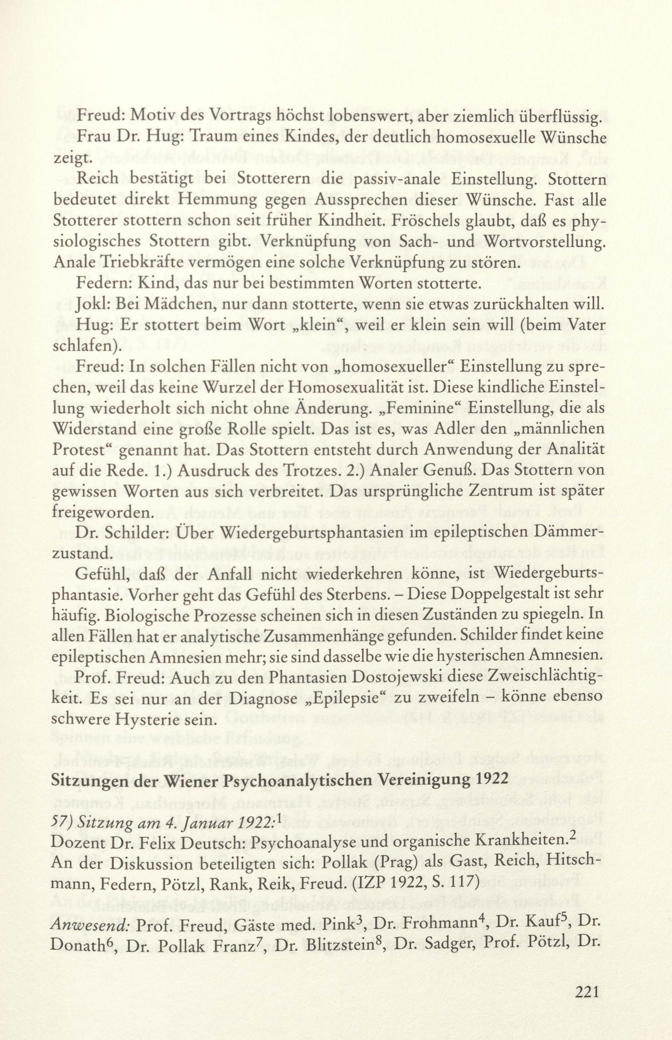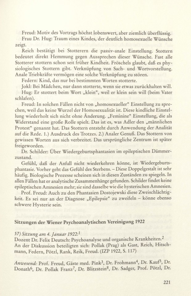 An der Diskussion beteiligten sich: Nunberg, Friedjung, Deutsch, Bernfeld,