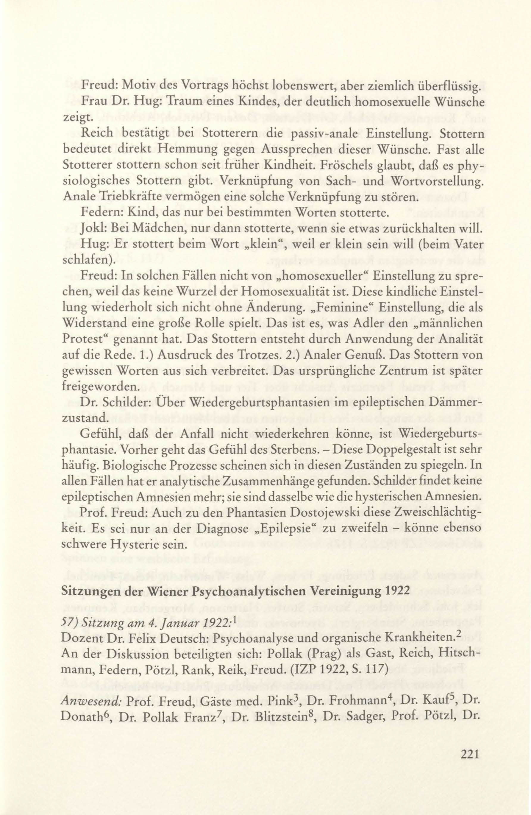 An der Diskussion beteiligten sich: Federn, Bernfeld, Reich, Jokl, Freud,