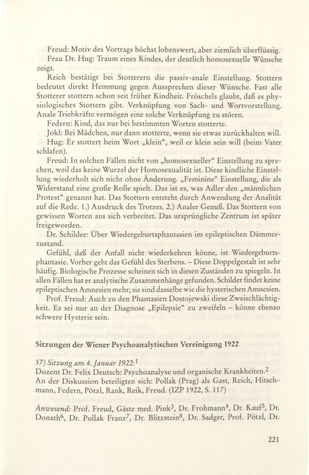 Anwesend: Sadger, Friedjung, Federn, Weiss, Winterstein, Reich, Fenichel,