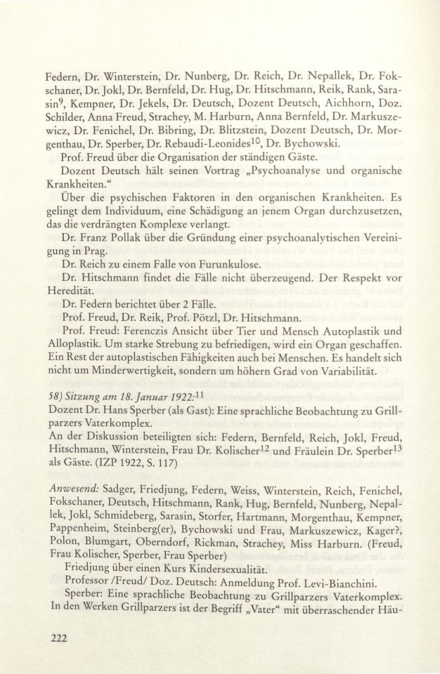 58) Sitzung am 18. Januar 1922. Hans Sperber: Eine sprachliche Beobachtung zu Grillparzers Vaterkomplex 1922-502/1995