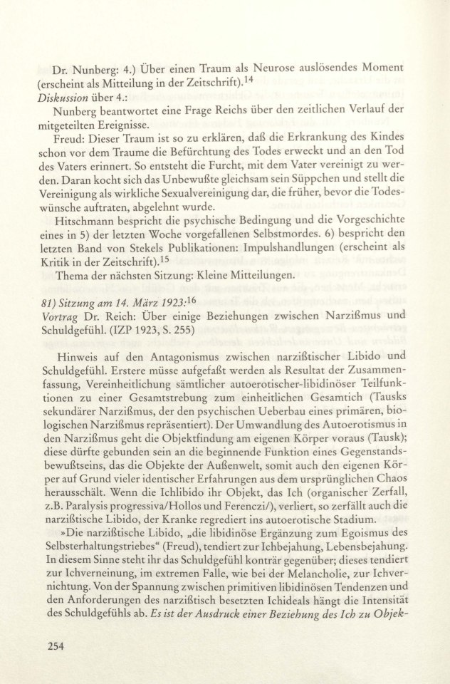 81) Sitzung am 14. März 1923. Wilhelm Reich: Über einige Beziehungen zwischen Narzißmus und Schuldgefühl 1923-507/1995
