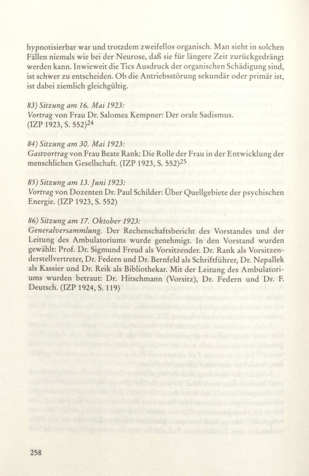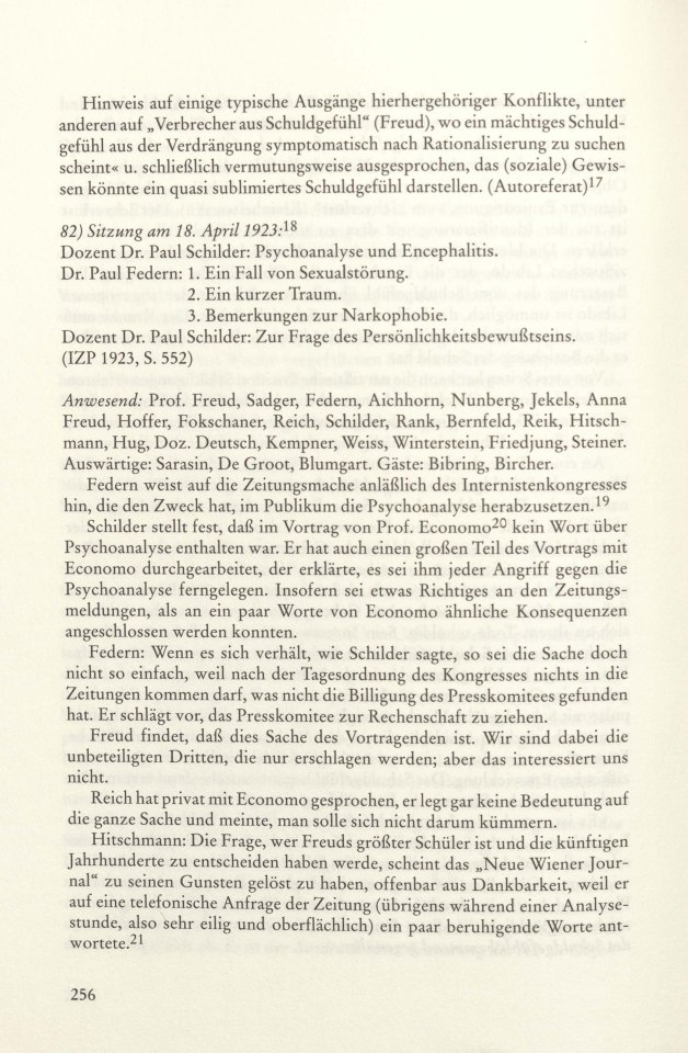 82) Sitzung am 18. Apirl 1923. Paul Schilder: Psychoanalyse und Encephalitis