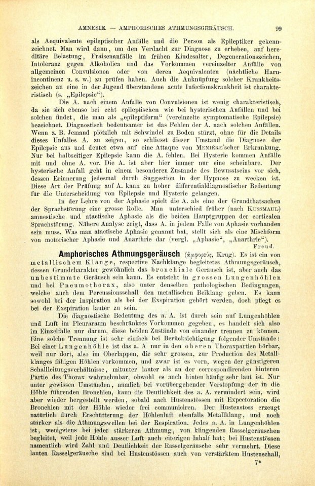 AMNESIE.  AMPHORISCHES ATMUNGSGERÄUSCH.                                                                               99