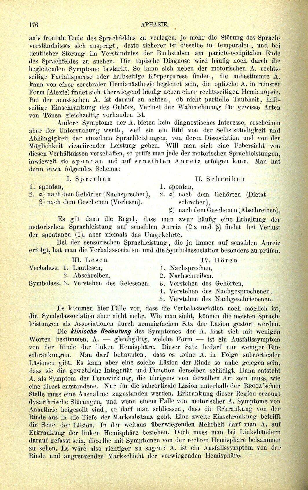 des Sprachfeldes zu suchen. Die topische Diagnose wird häufig noch durch die