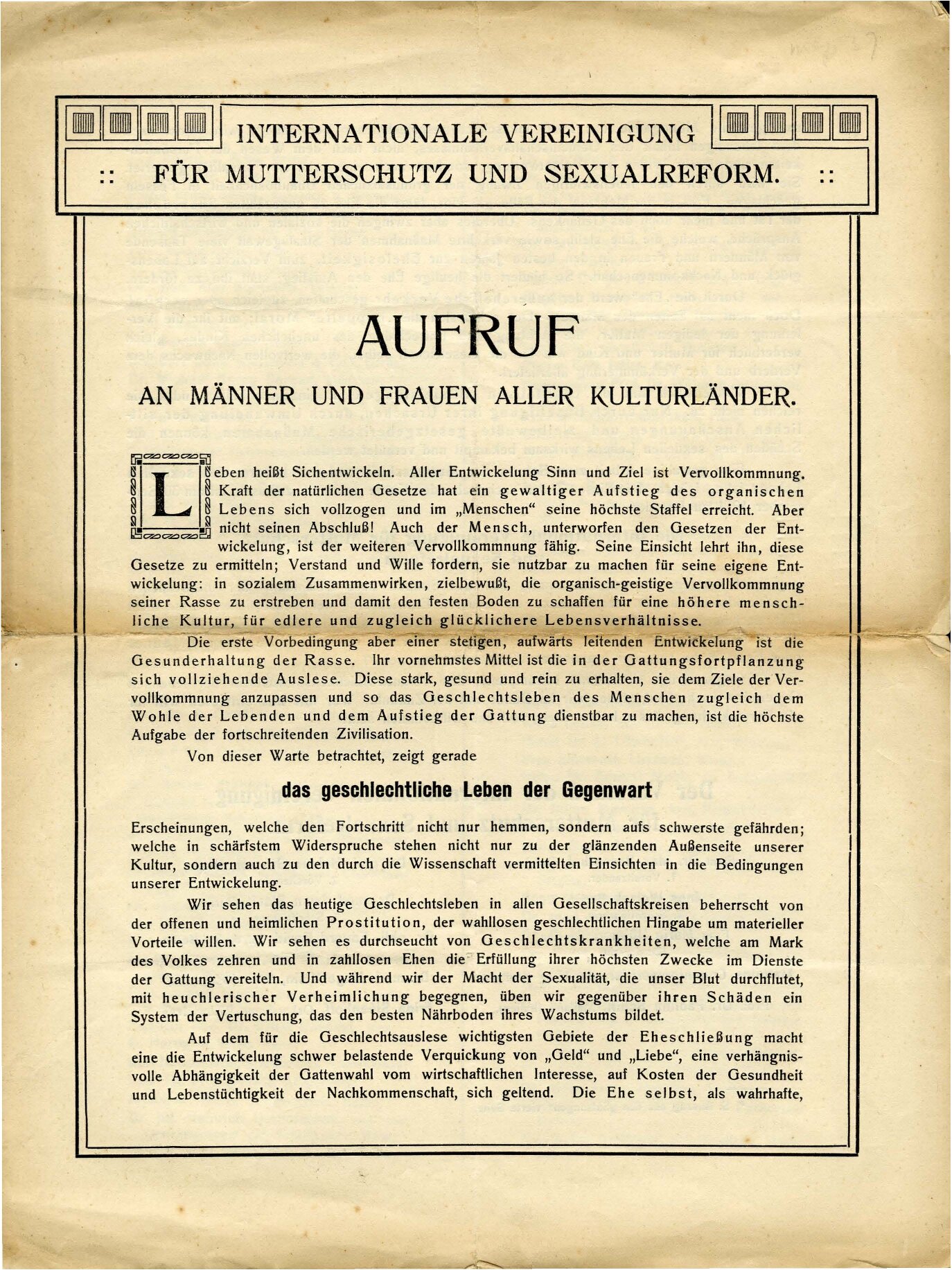 FÜR MUTTERSCHUTZ UND SEXUALREFORM. ::