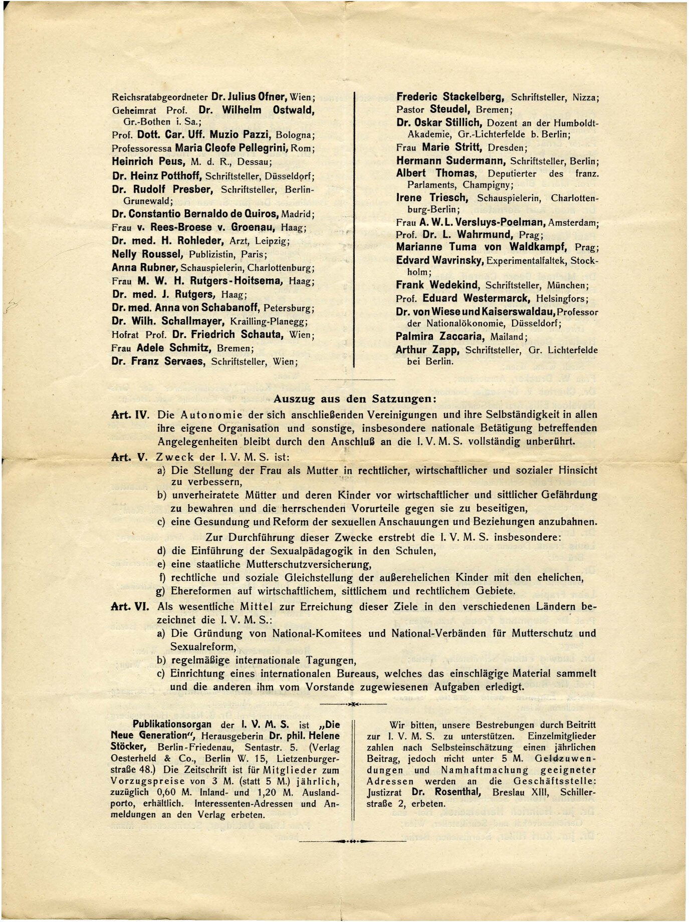 tember 1911 zu DresdenDie Internationale Vereinigung für Mutterschutz und