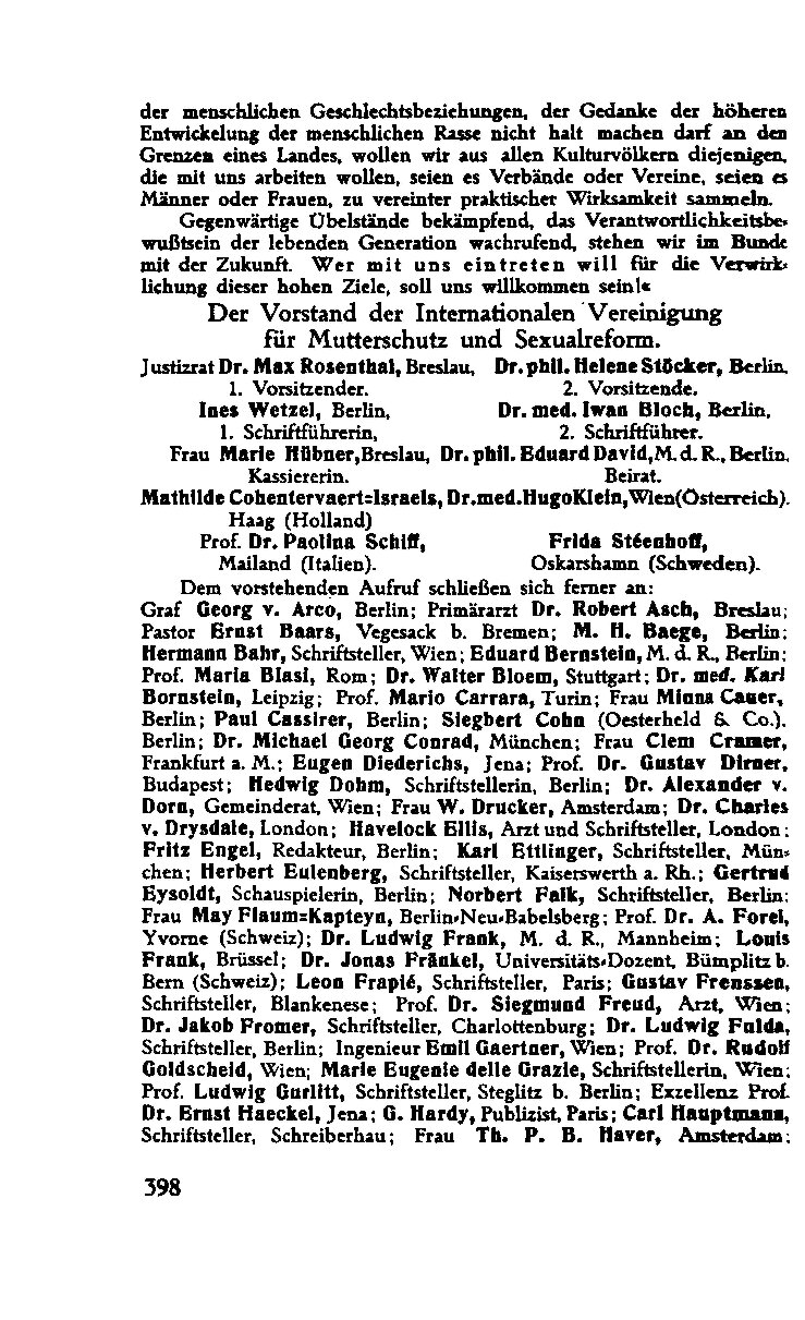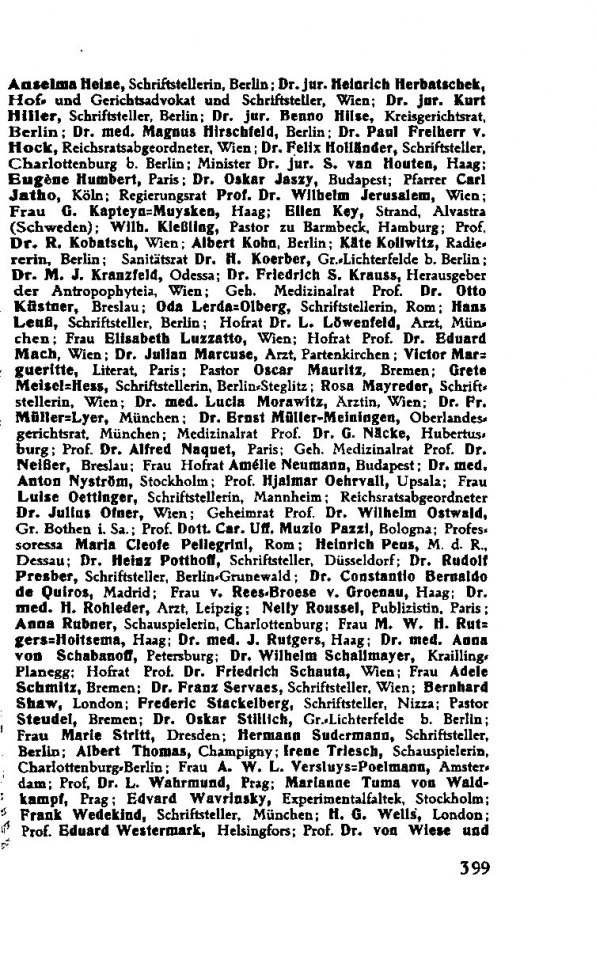 GROENAU, Haag; Dr. med. H. RÖHLEDER, Arzt, Leipzig; NELLY ROUSSEL, Publizistin, Paris; ANNA