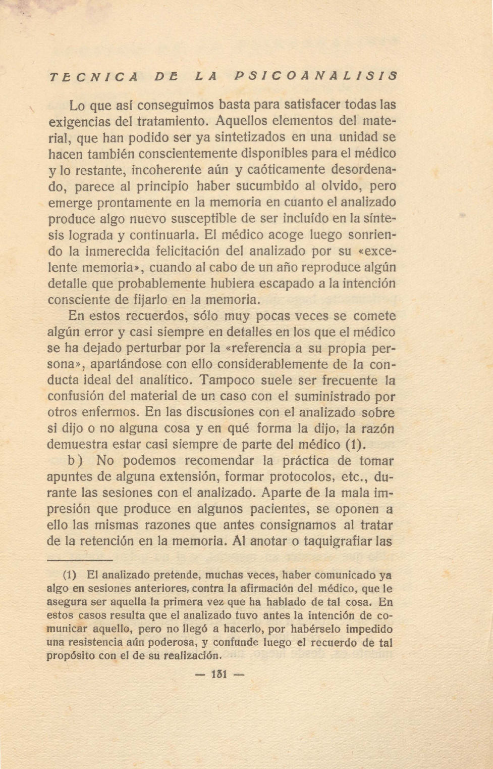 de la retención en la memoria. Al anotar o taquigrafiar las(1) El analizado pretende, muchas veces, haber comunicado ya