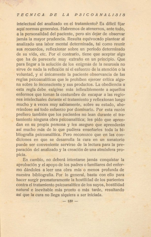 contra el tratamiento psicoanalítico de los suyos, hostilidad