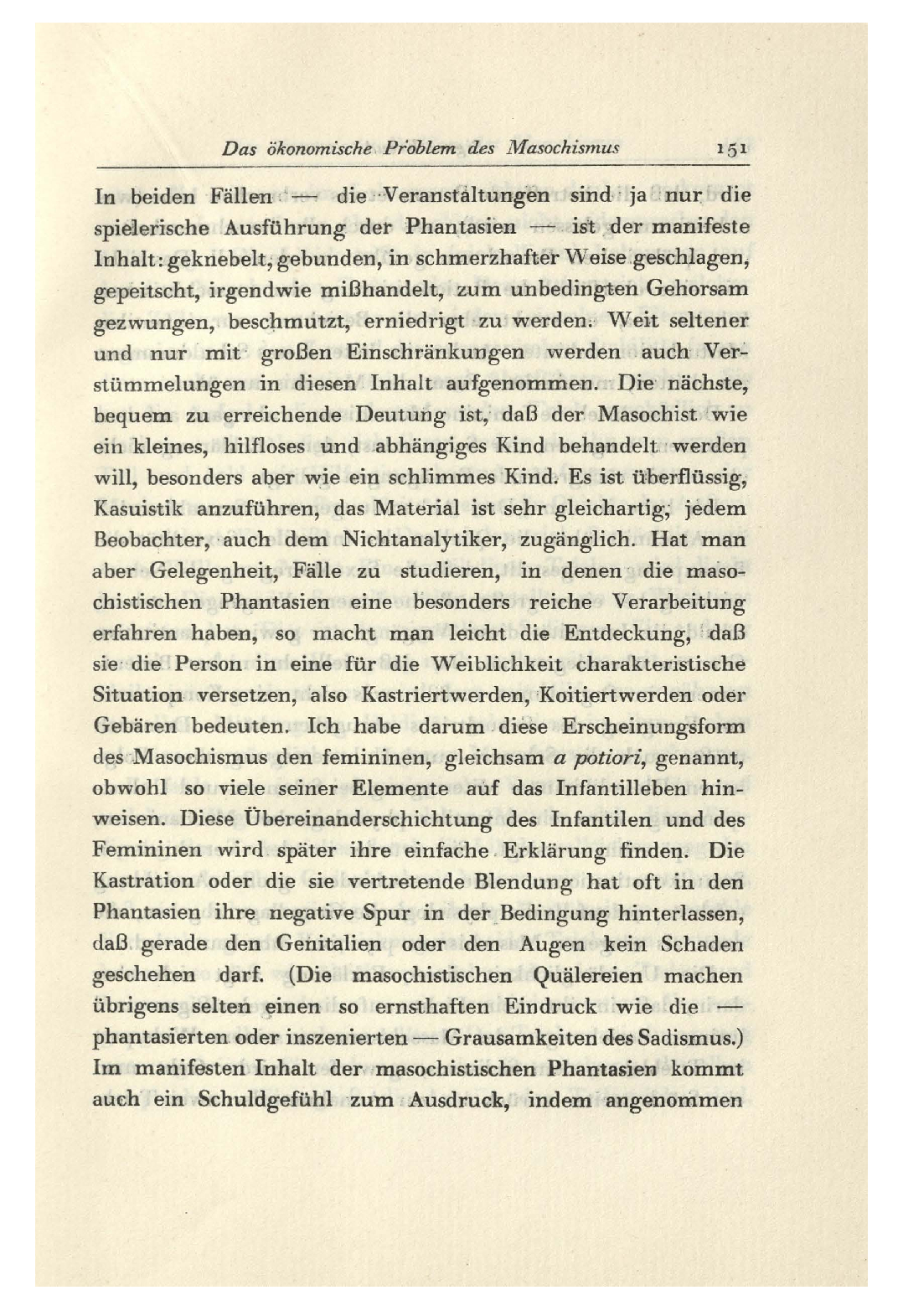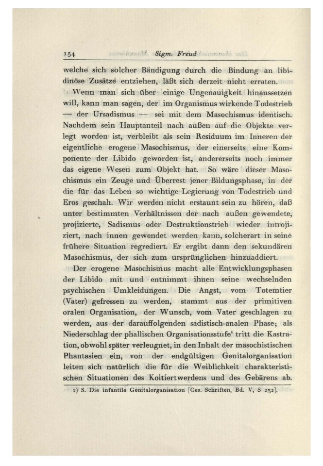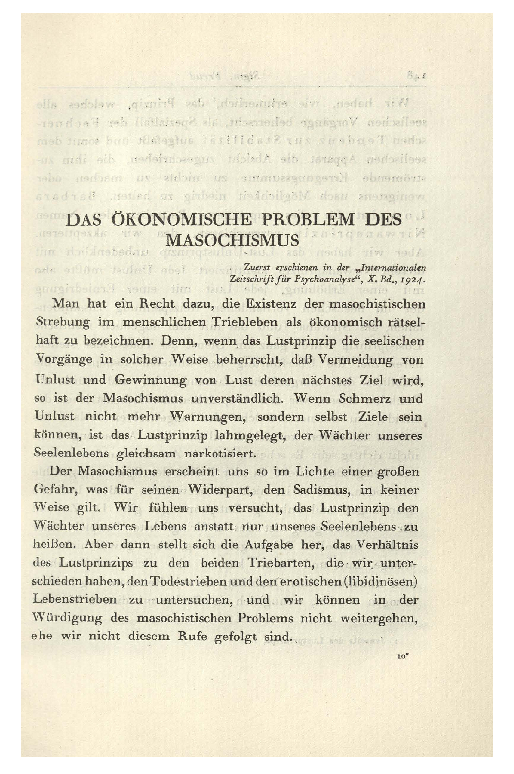 Zeitschrift für Psychoanalyse“, X. Bd., 1924.Man hat ein Recht dazu, die Existenz der masochistischen