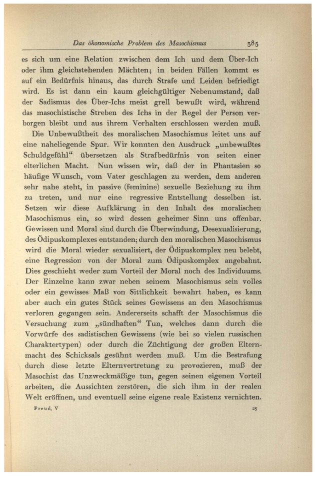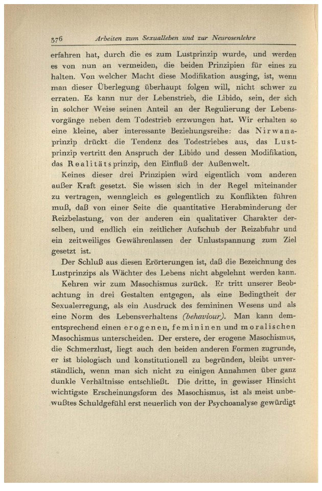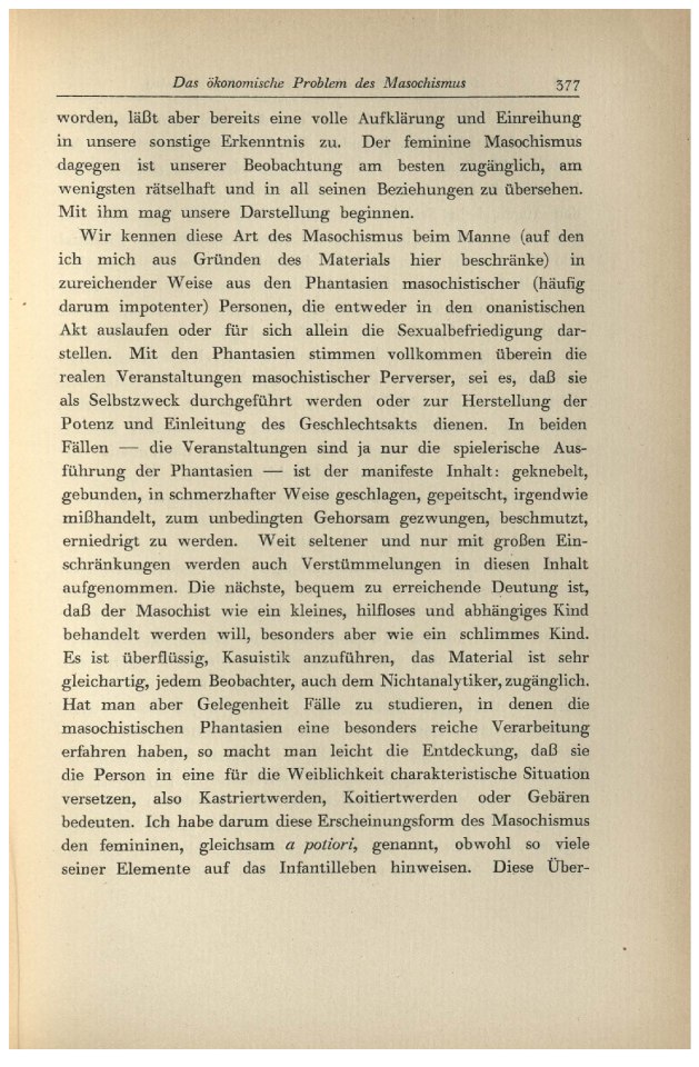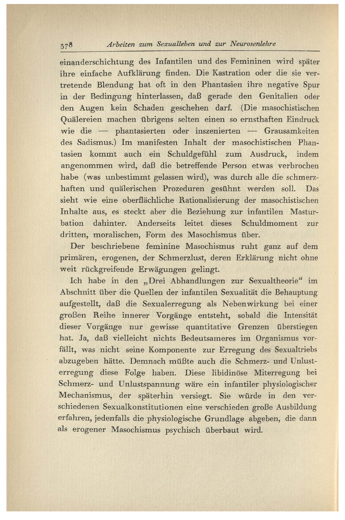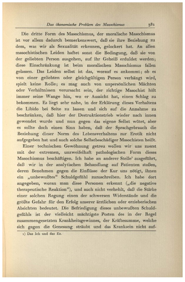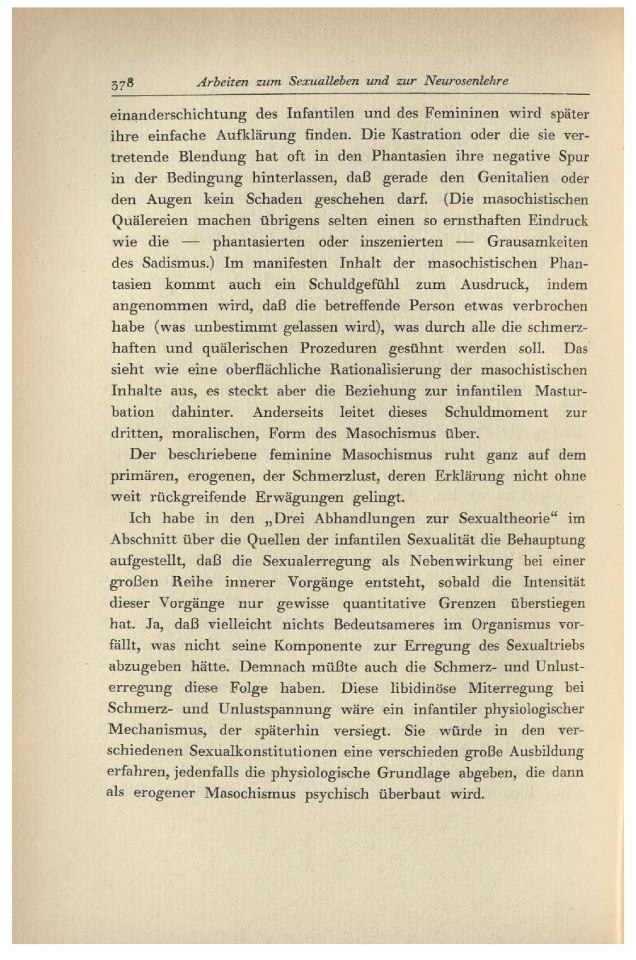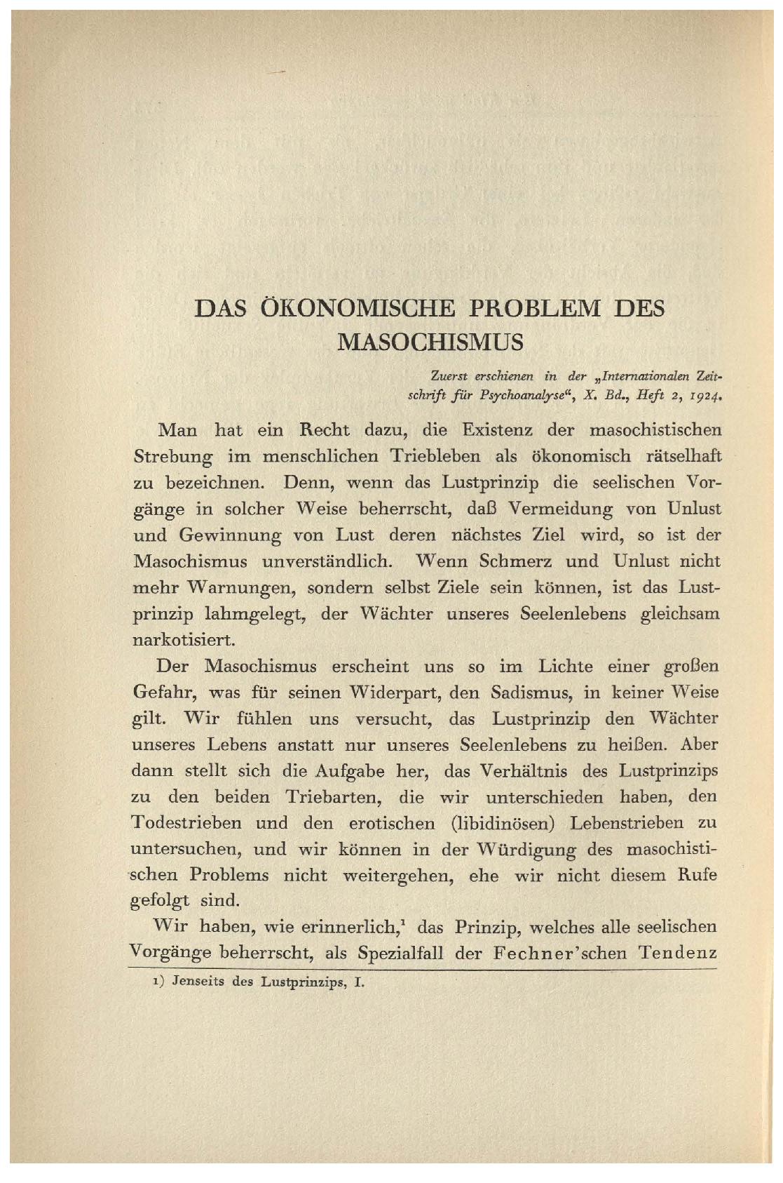 schrift für Psychoanalyse“, X, Bd., Heft 2, 1924.Man hat ein Recht dazu, die Existenz der masochistischen