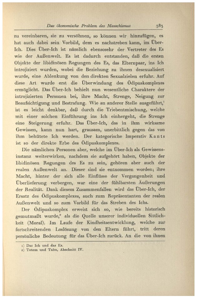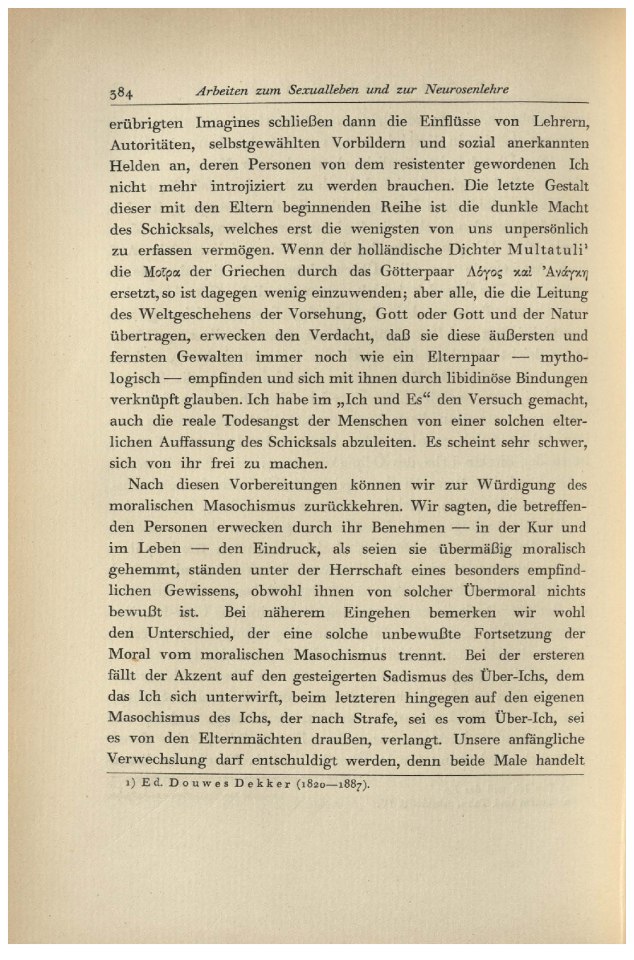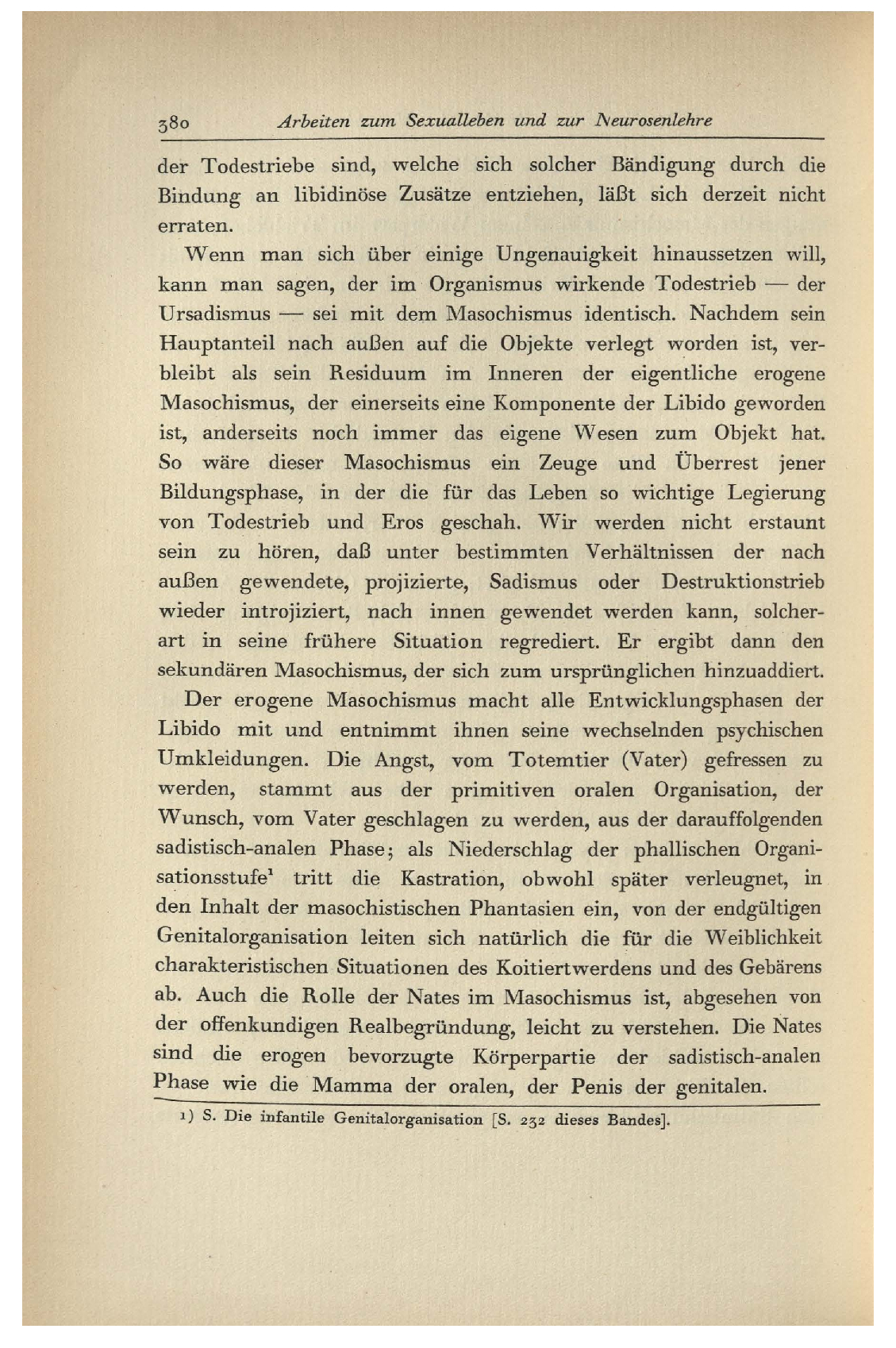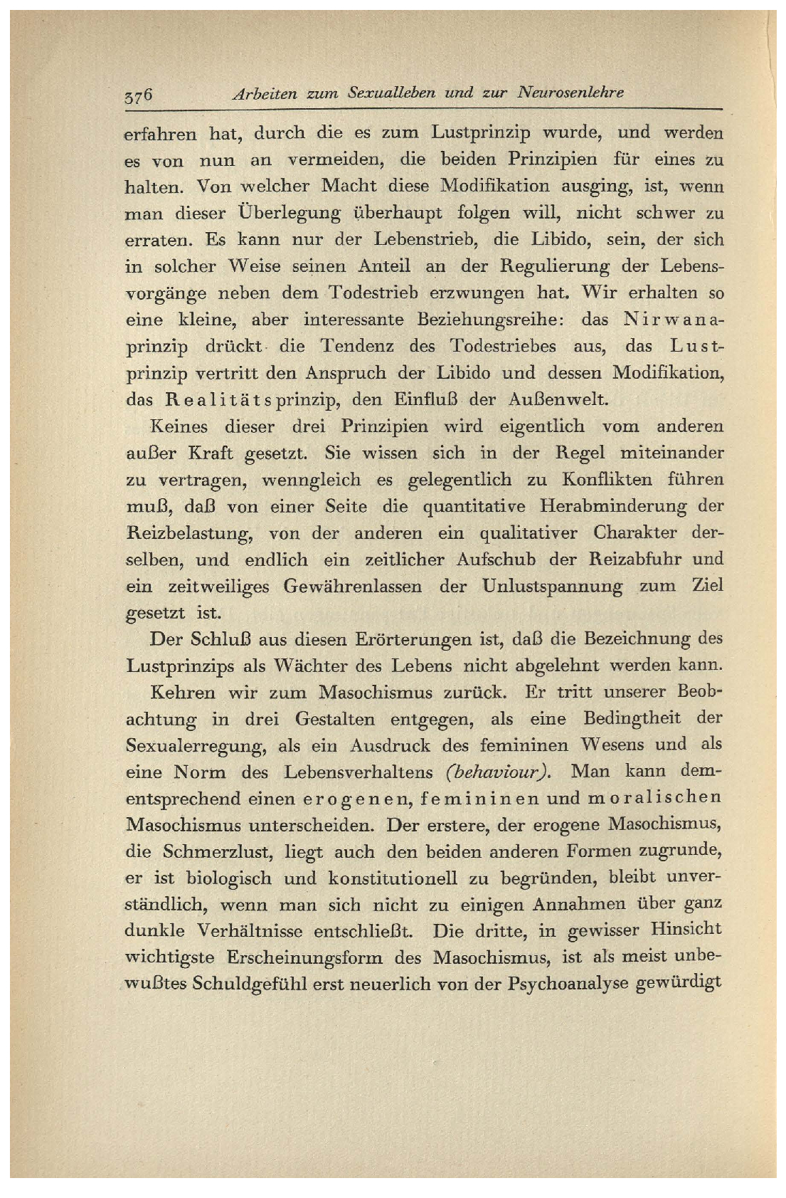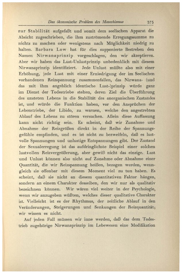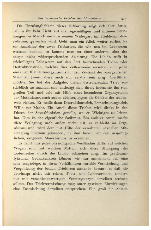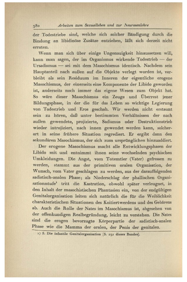 schrift für Psychoanalyse“, X, Bd., Heft 2, 1924.Man hat ein Recht dazu, die Existenz der masochistischen