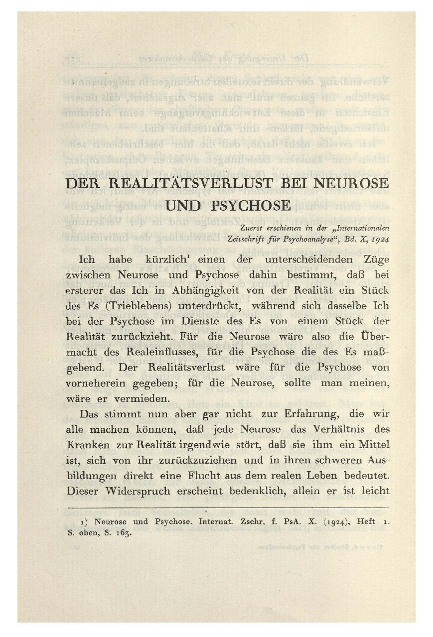 (Neurose) und die Realitätsvertretung sich nicht in die