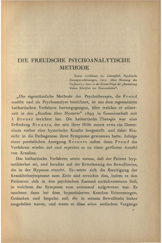 kleiner Schriften zur Neurosenlehre“.„Die eigentümliche Methode der Psychotherapie, die Freud