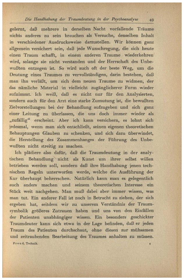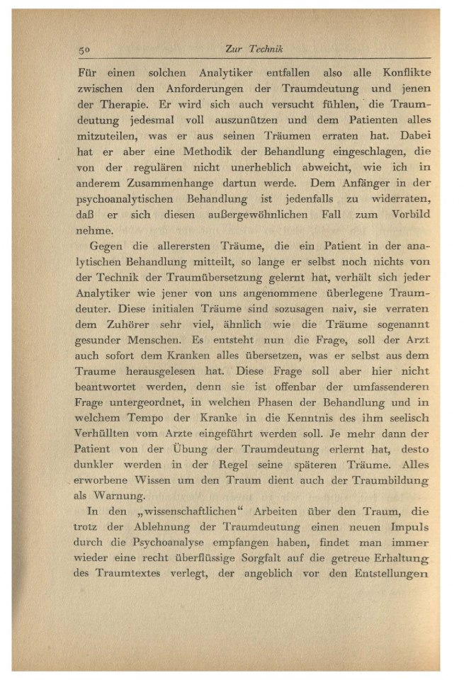 die nach der Technik der Traumdeutung. Es soll nicht erörtert