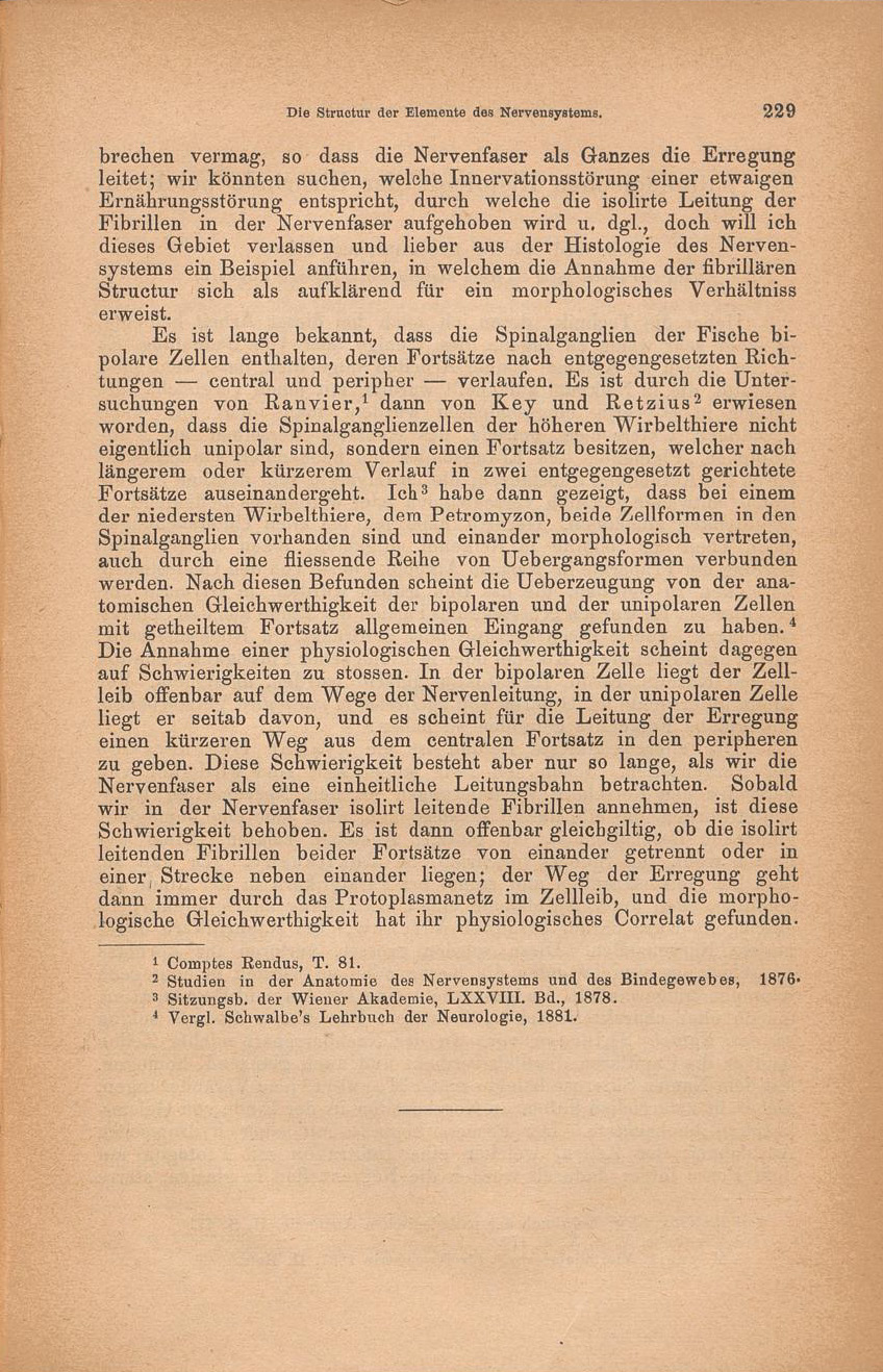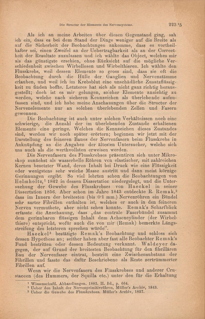 entnehme, keine Kenntniss hatte.In Betreff der Structur der Nervenzelle konnte ich mich schon, als ich