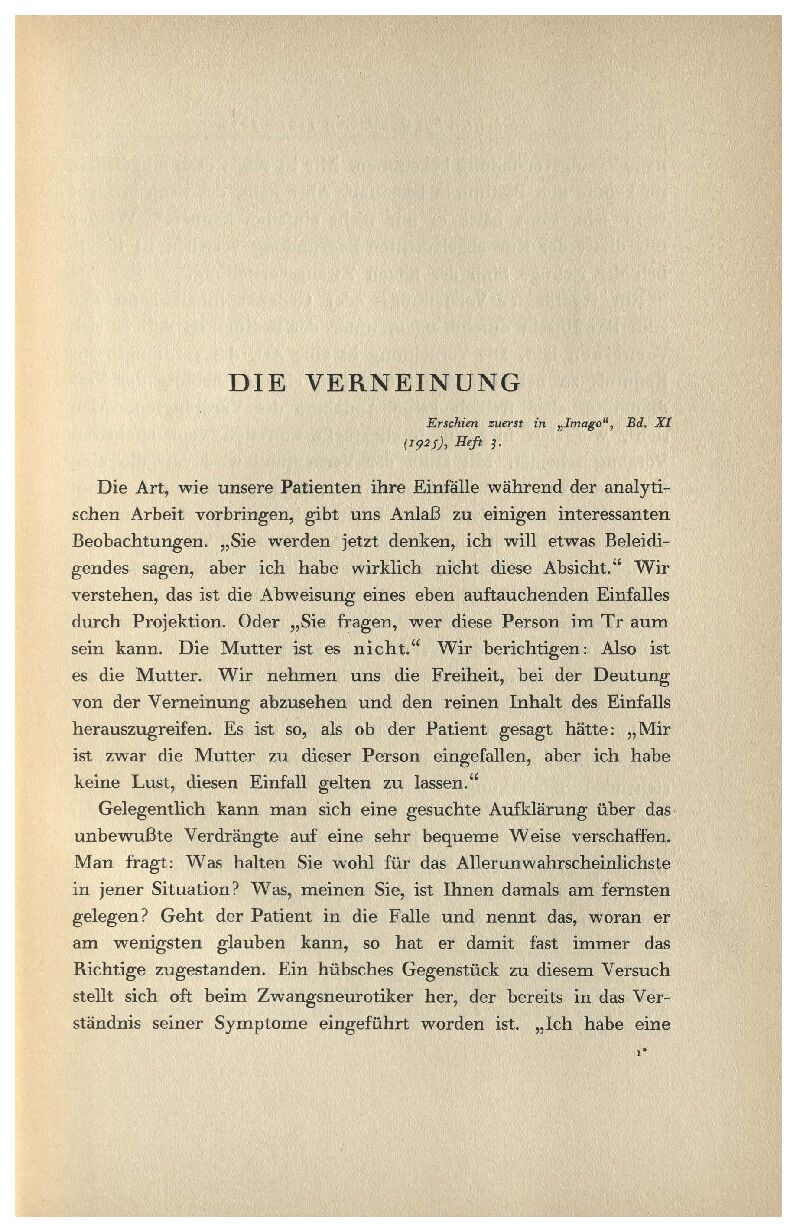 verneinen läßt. Die Verneinung ist eine Art, das Verdrängte zur