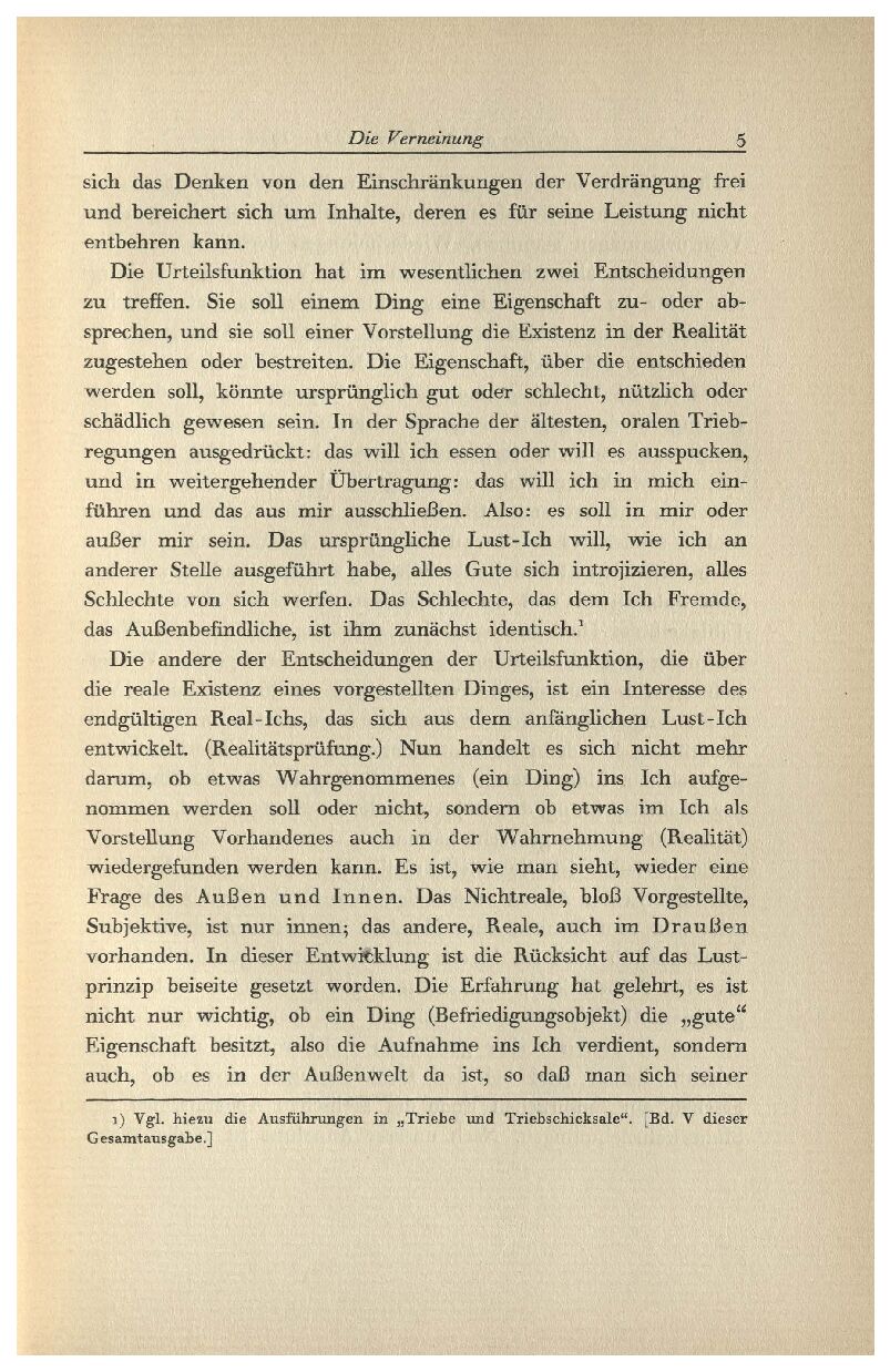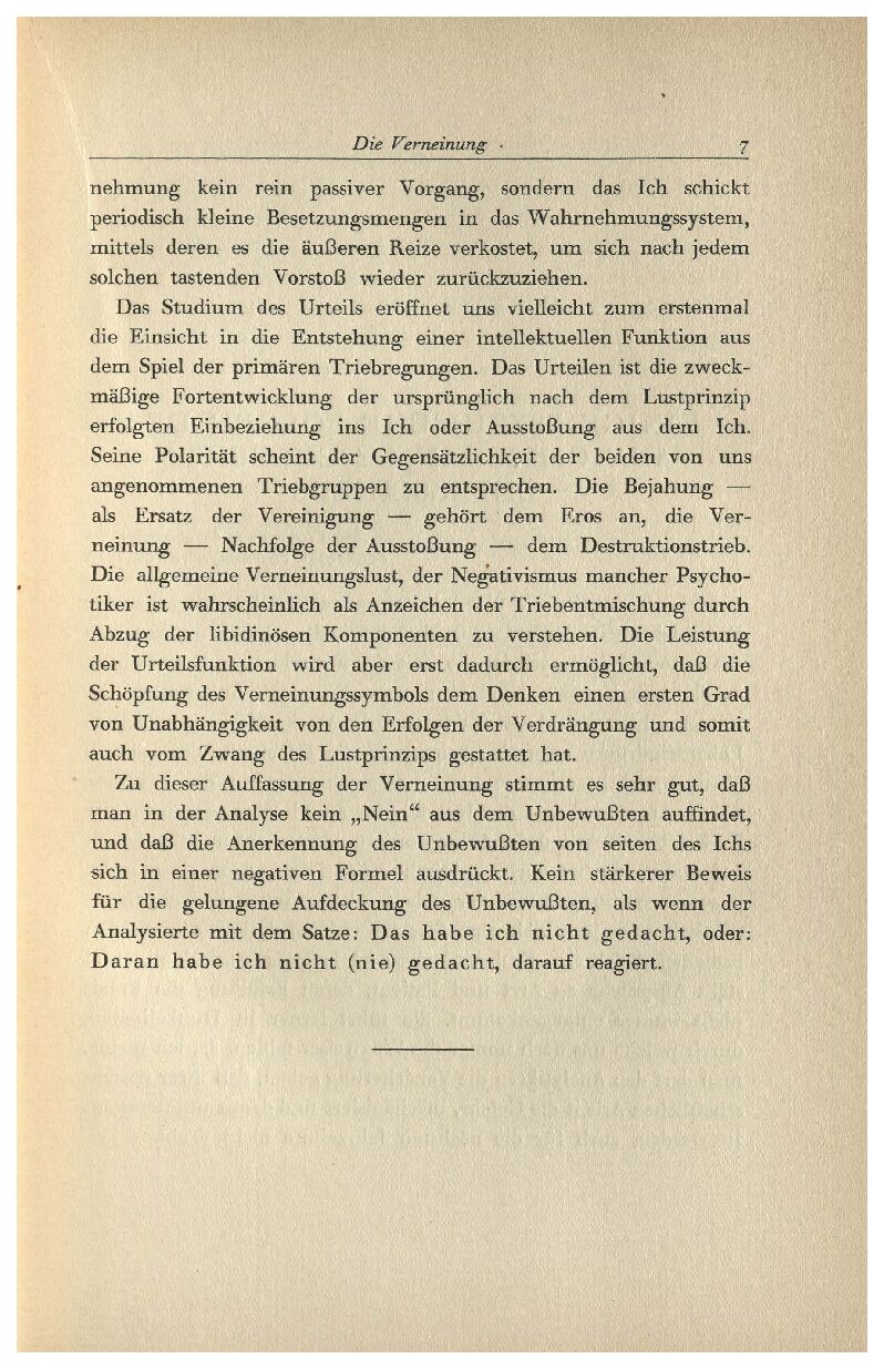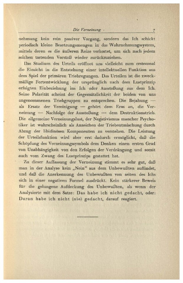 auch vom Zwang des Lustprinzips gestattet hat.Zu dieser Auffassung der Verneinung stimmt es sehr gut, daß