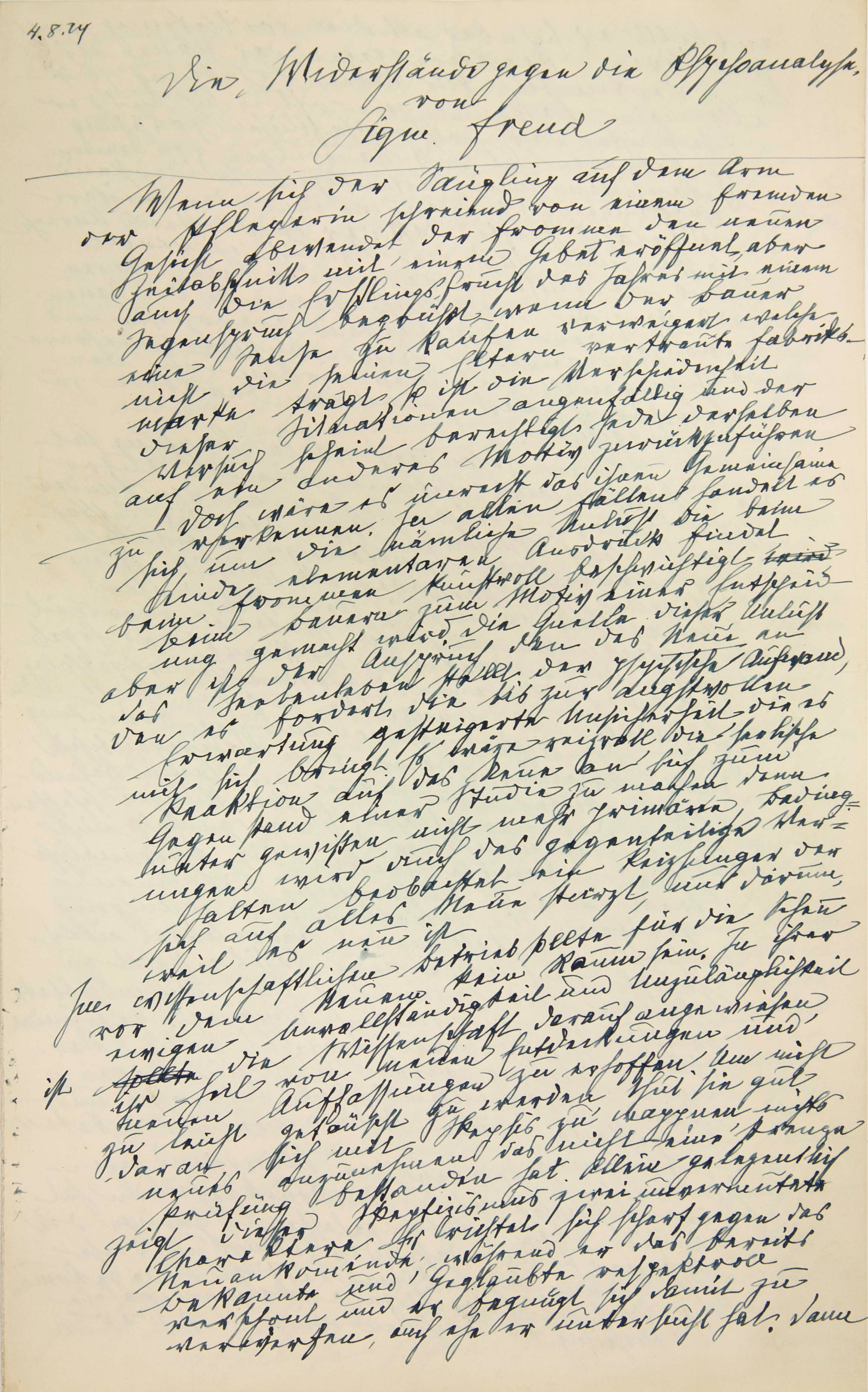 Sigmund Freud Papers: Oversize, 1859-1985; Writings; 1925; "Die Widerstände gegen die Psychoanalyse" [ 1924 ] [e], holograph manuscript