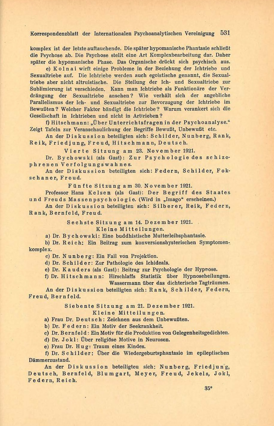 Reik, Friedjung, Freud, Hitschmann, Deutsch.35*