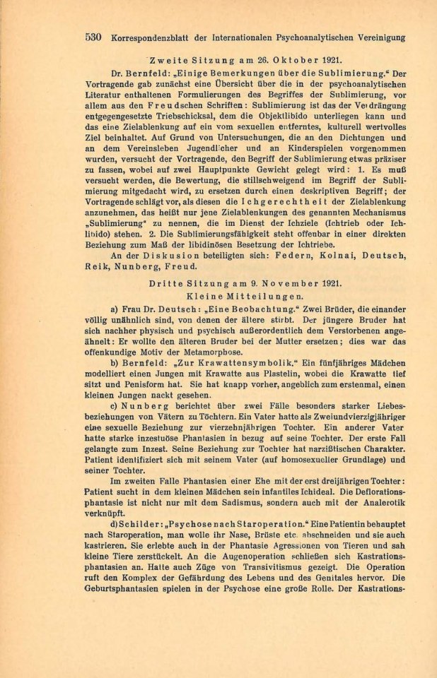 530 Korrespondenzblatt der Internationalen Psychoanalytischen Vereinigung