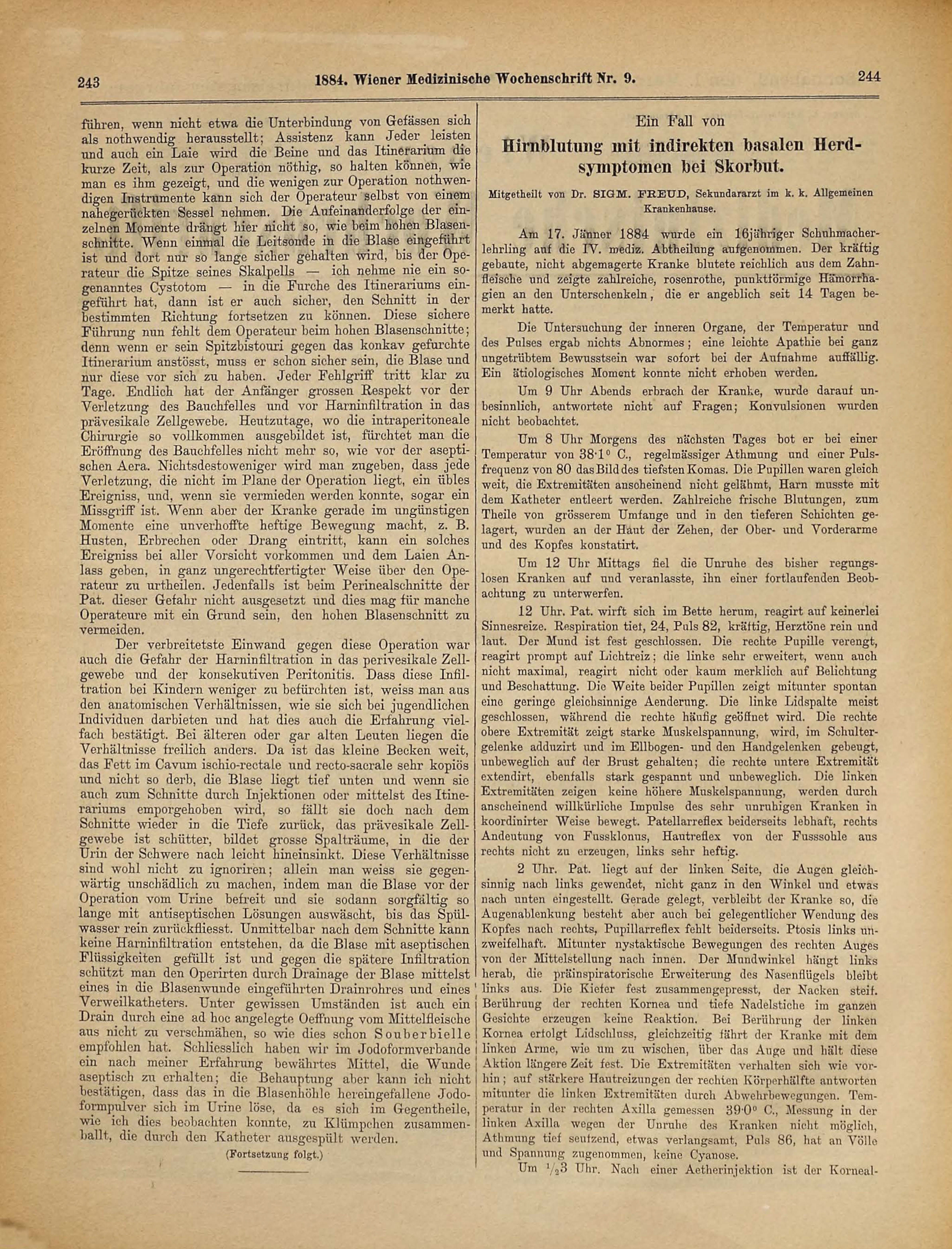 symptomen bei Skorbut.Mitgetheilt von Dr. SIGM. FREUD, Sekundararzt im k. k. Allgemeinen
