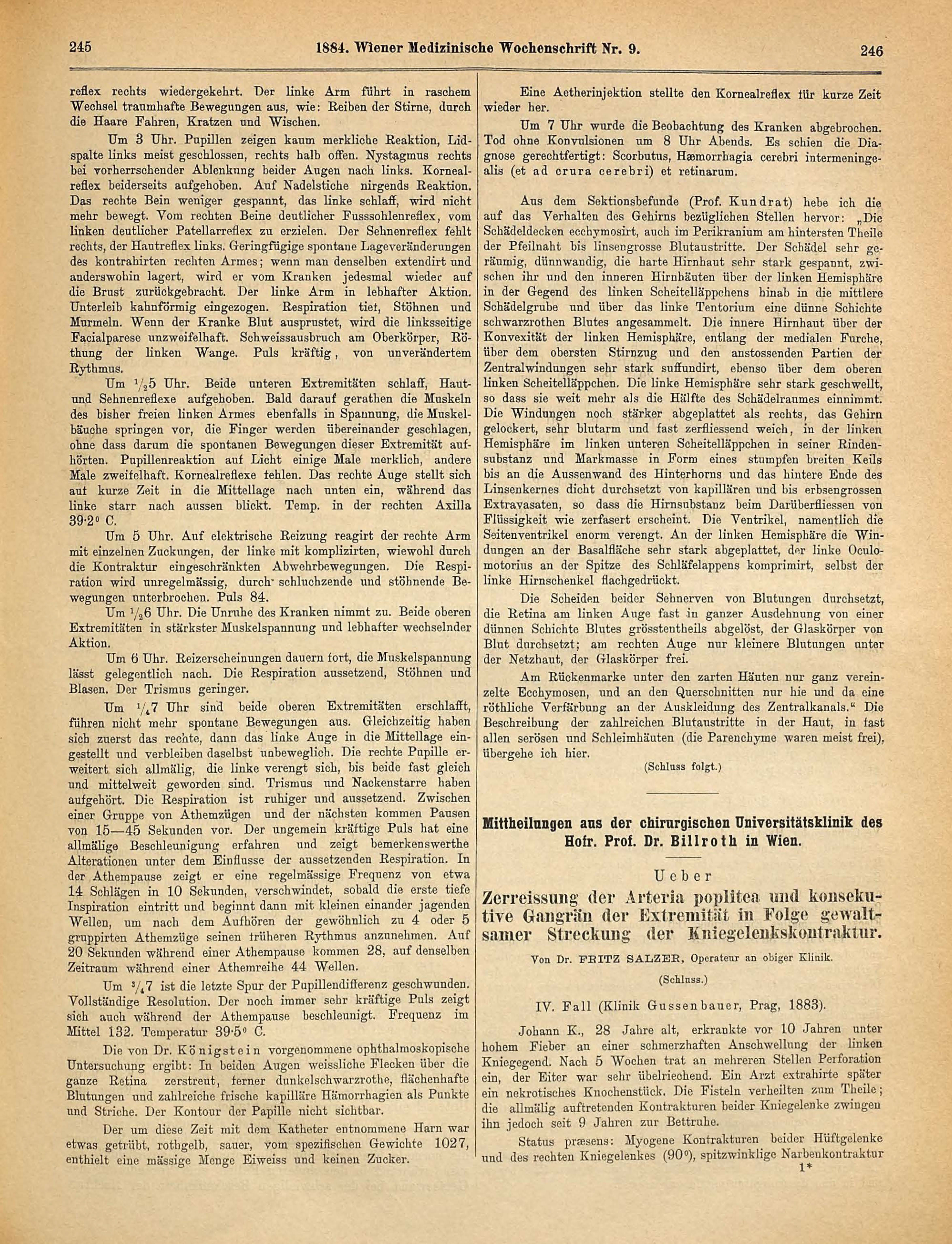 Krankenhause.Am 17. Jänner 1884 wurde ein 16jähriger Schuhmacherlehrling auf die IV.