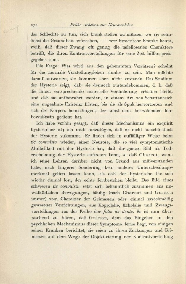 merkmal gelten lassen kann, als daß der hysterische Tic sich