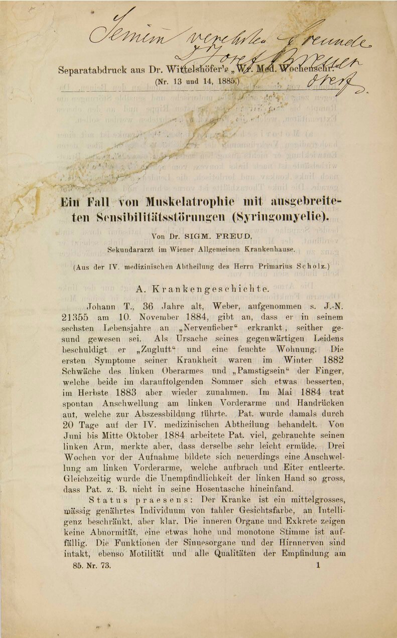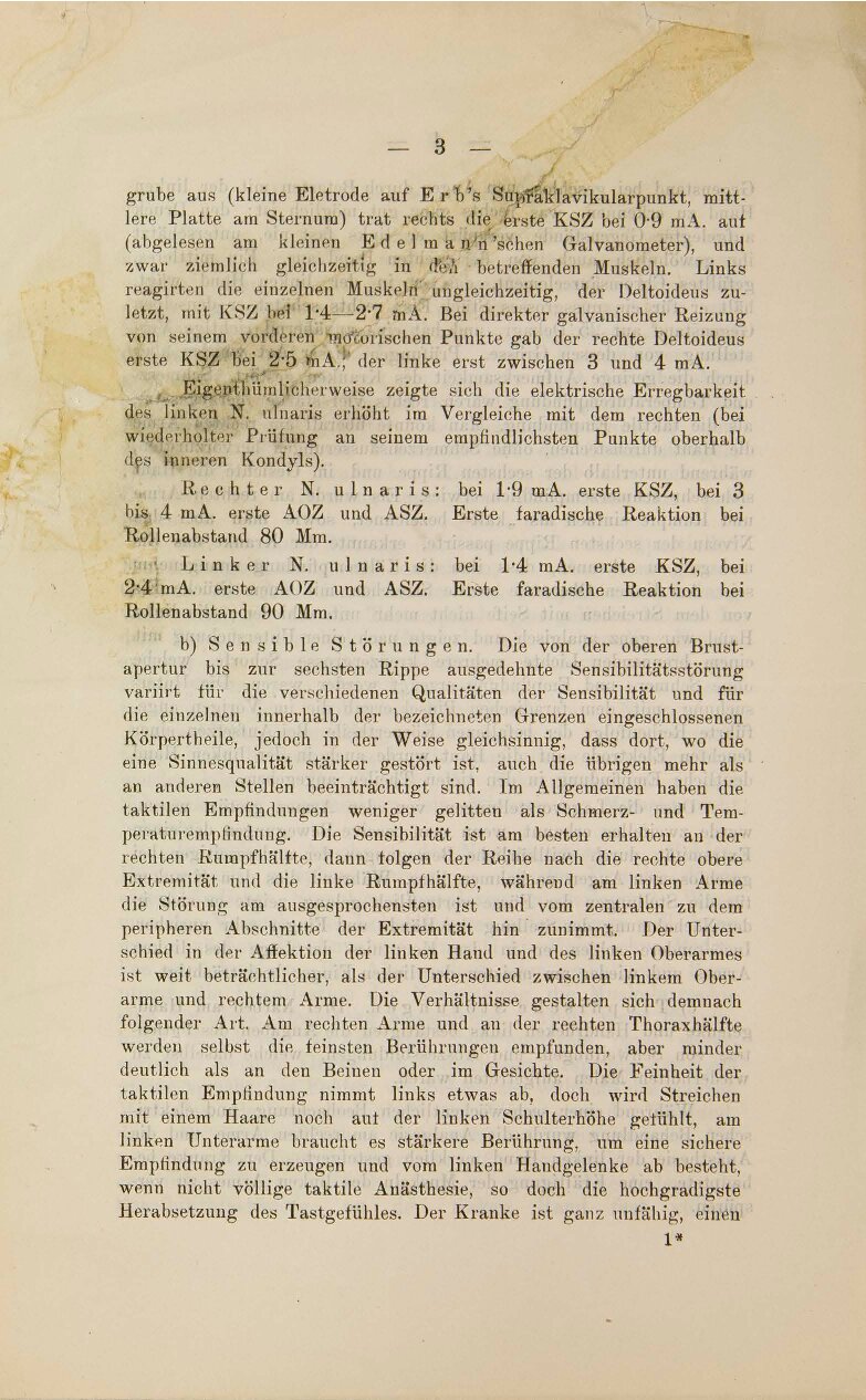 Ein Fall von Muskelatrophie mit ausgebreiteten Sensibilitätsstörungen (Syringomyelie) 1885-002/1885.3