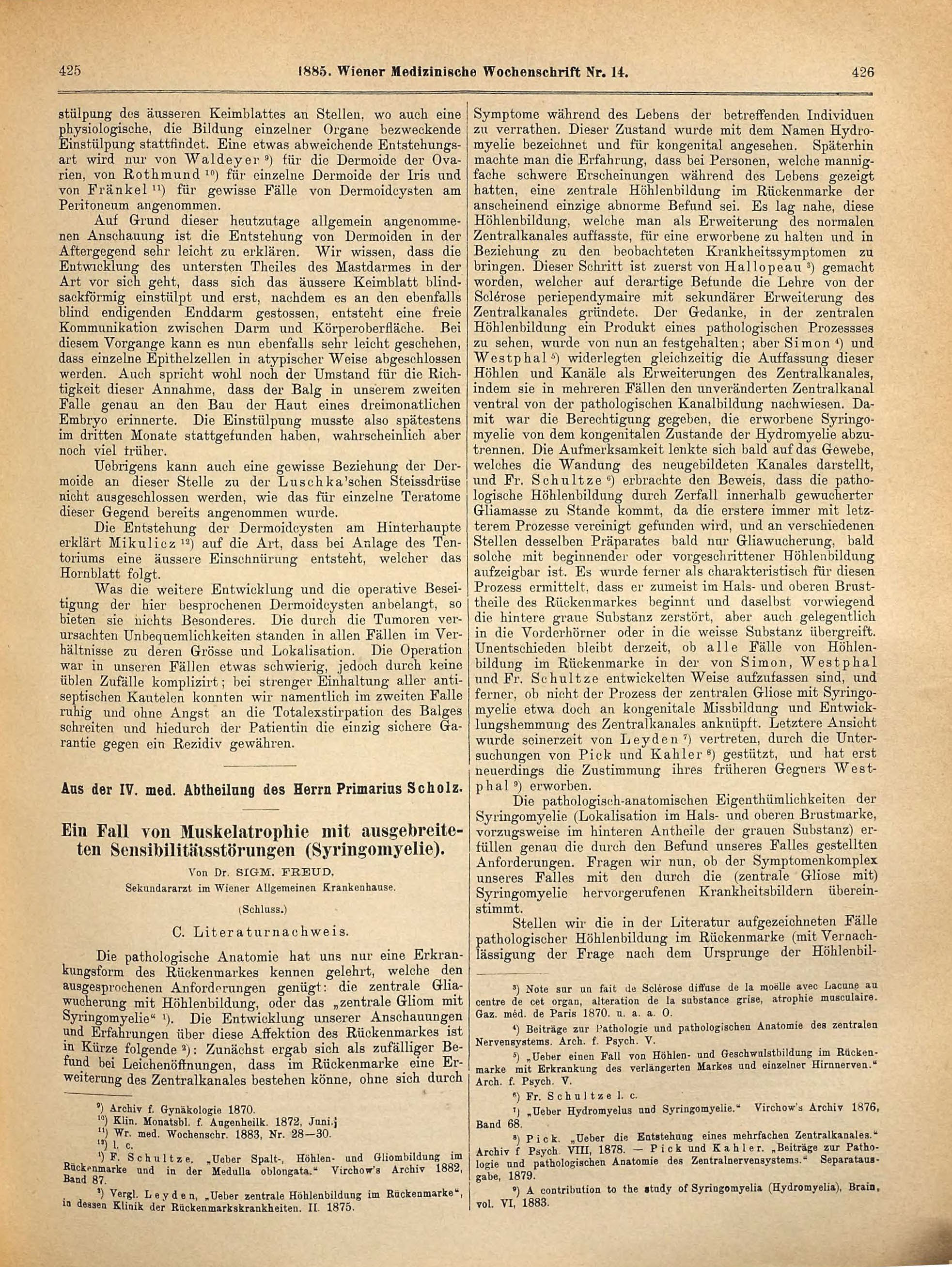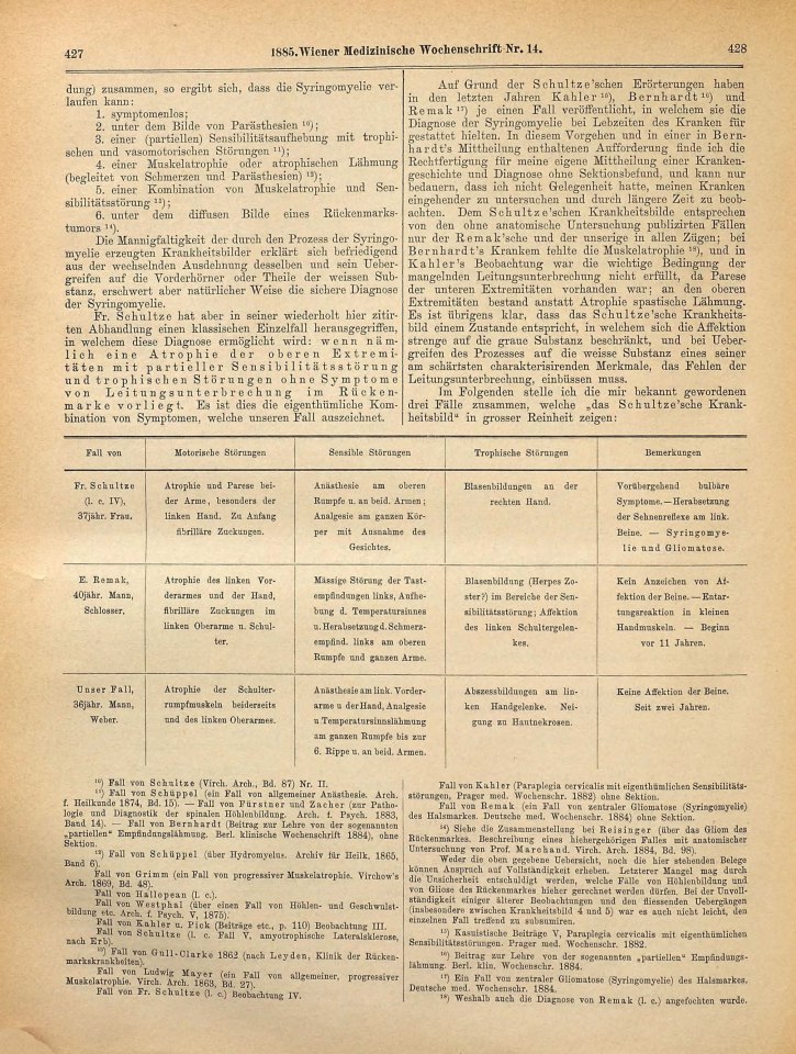 Diagnostik der spinalen Höhlenbildung. Arch. f. Psych. 1883, Band 14). – Fall