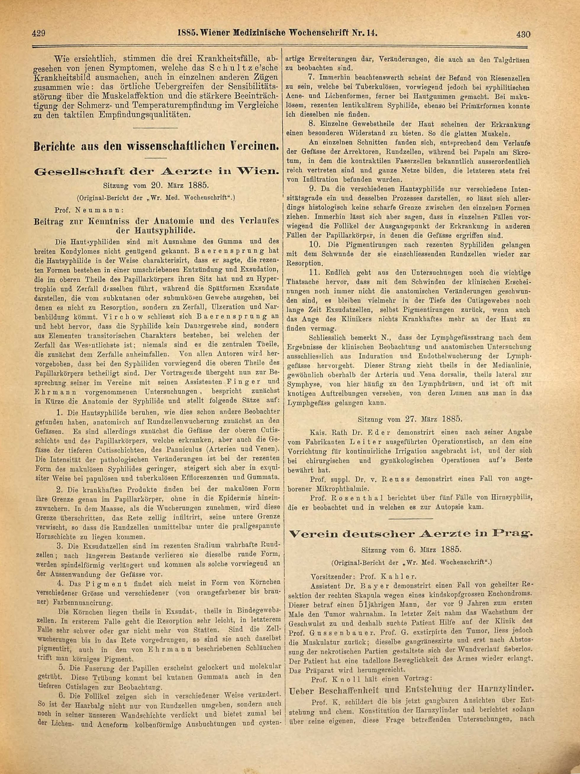 Prager med. Wochenschr. 1882) ohne Sektion.