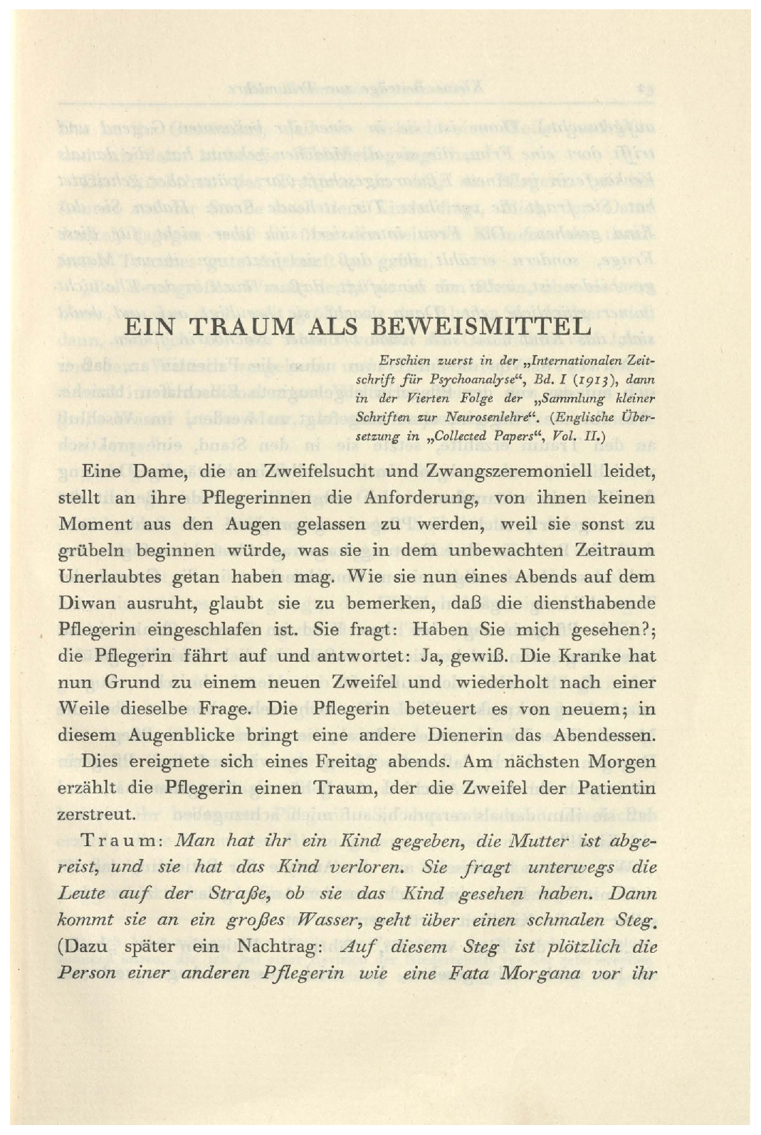 setzung in „Collected Papers“, Vol. II.)Eine Dame, die an Zweifelsucht und Zwangszeremoniell leidet,