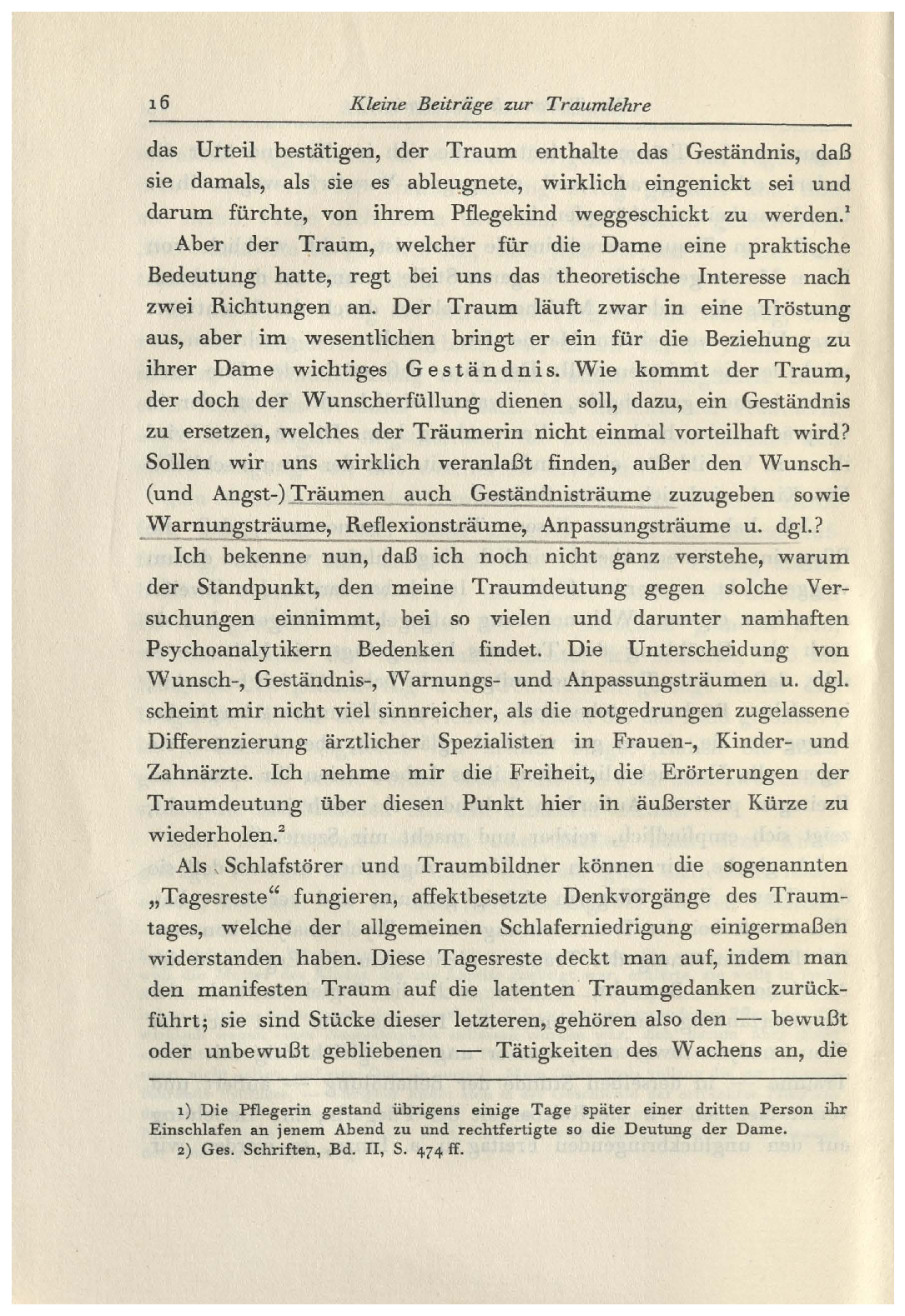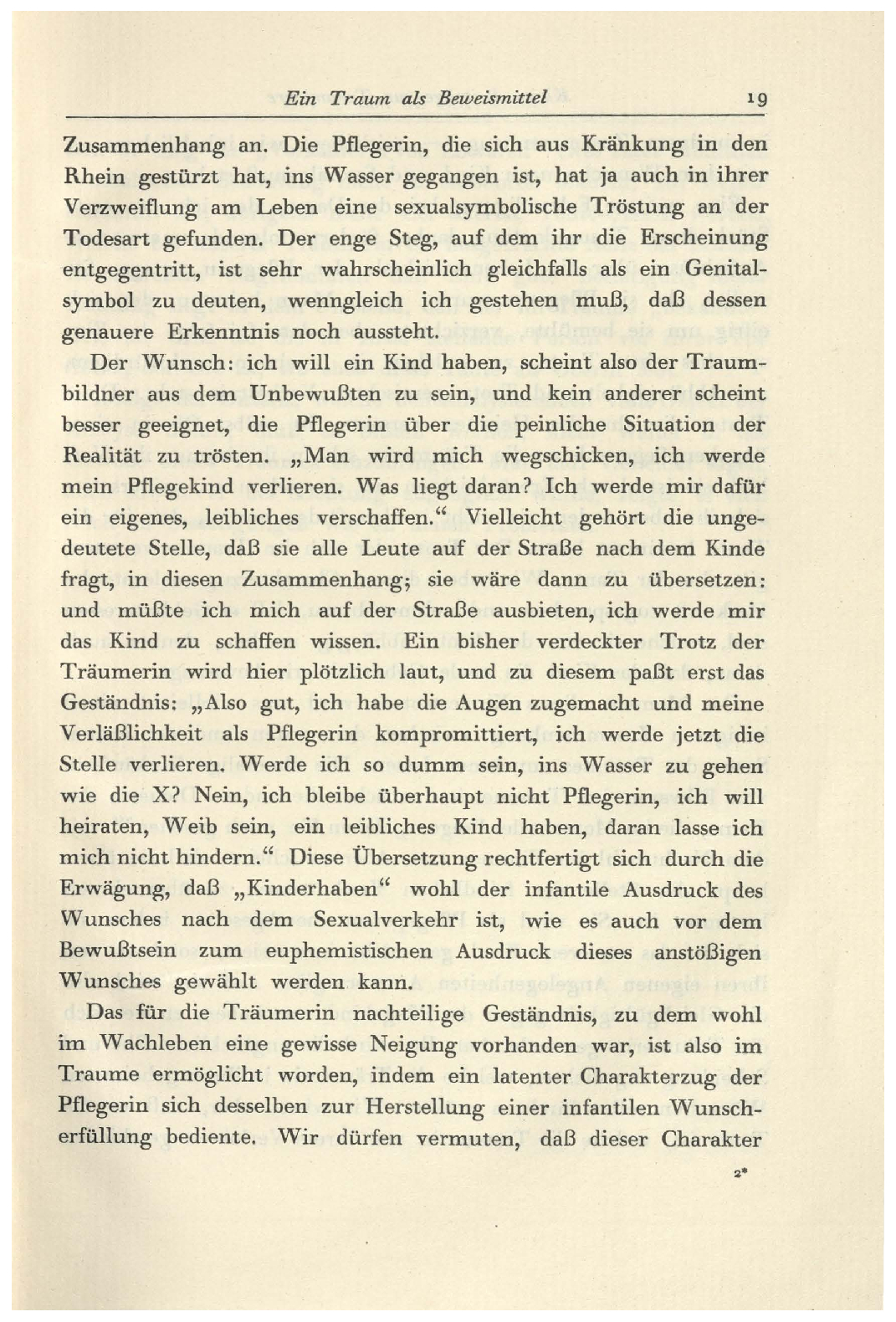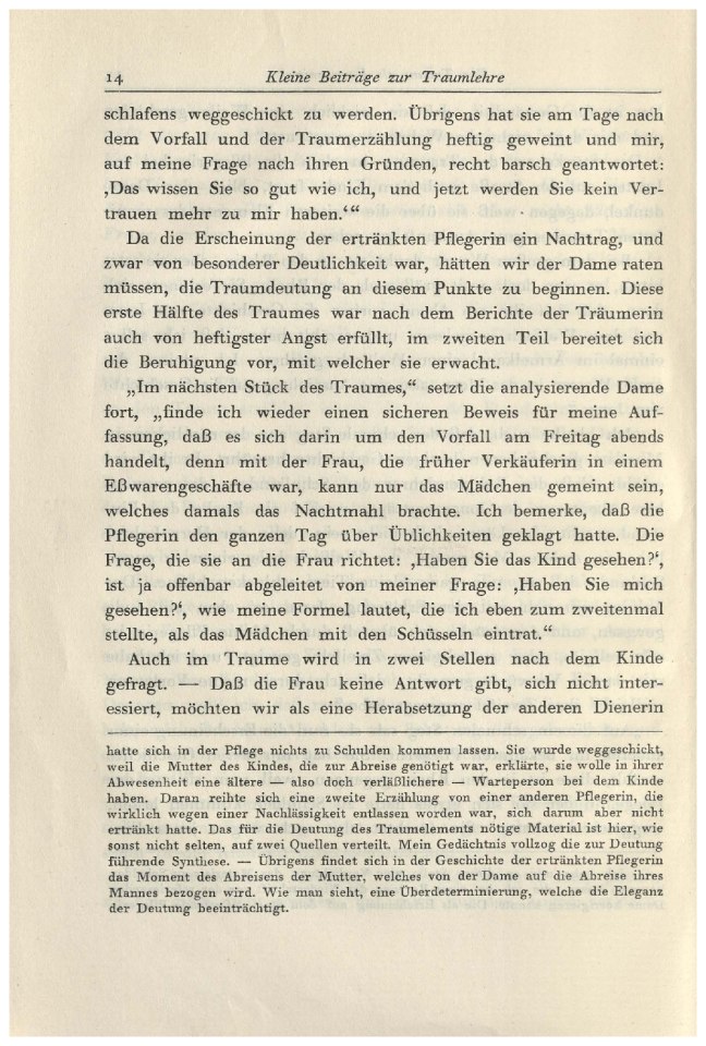 den Standpunkt der Psychoanalyse, zu verleugnen.Kehren wir nun zum Traume der Pflegerin zurück, um an
