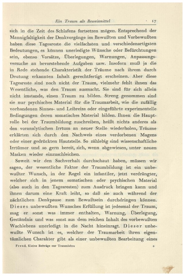 ihm den Tiefencharakter der Wunscherfüllung nachzuweisen. Wir