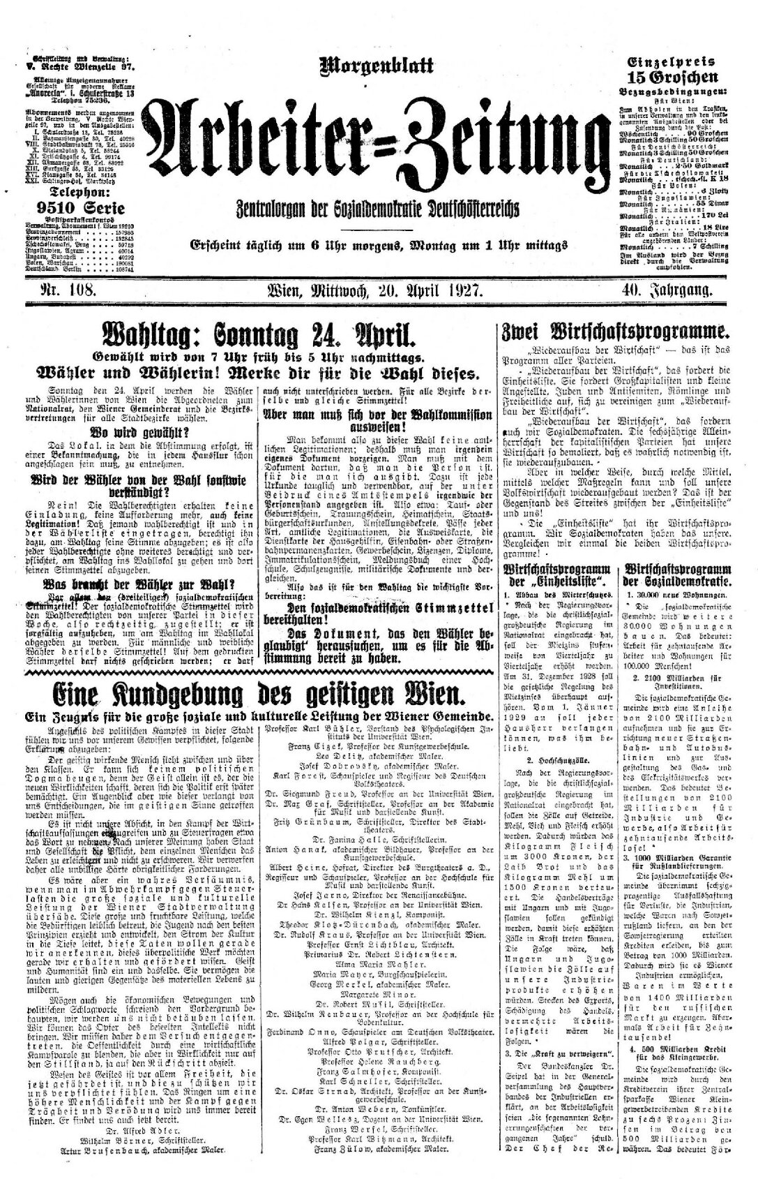 EINE KUNDGEBUNG der geistigen Wien.