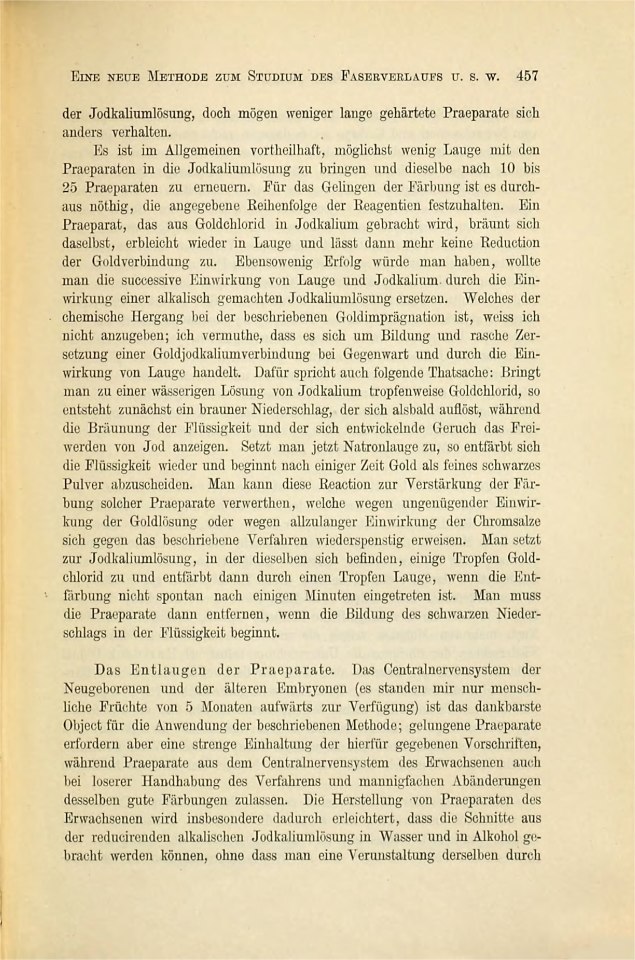 Stande kommt, welche den Verlauf der Faserzüge nachahmen.3Ein zweiter Vorzug der Methode ist das Sichtbarwerden sehr feiner markhaltiger