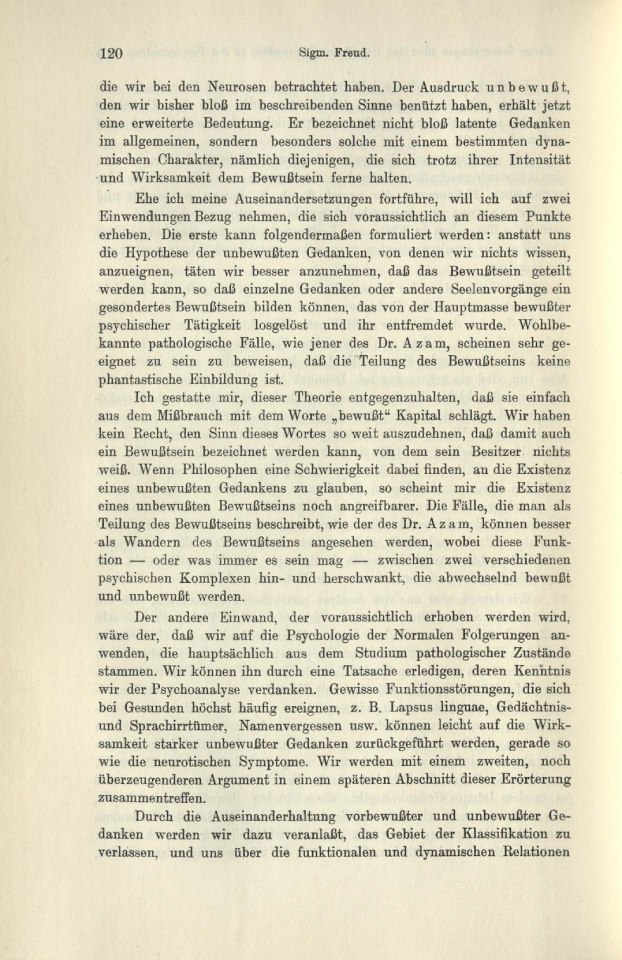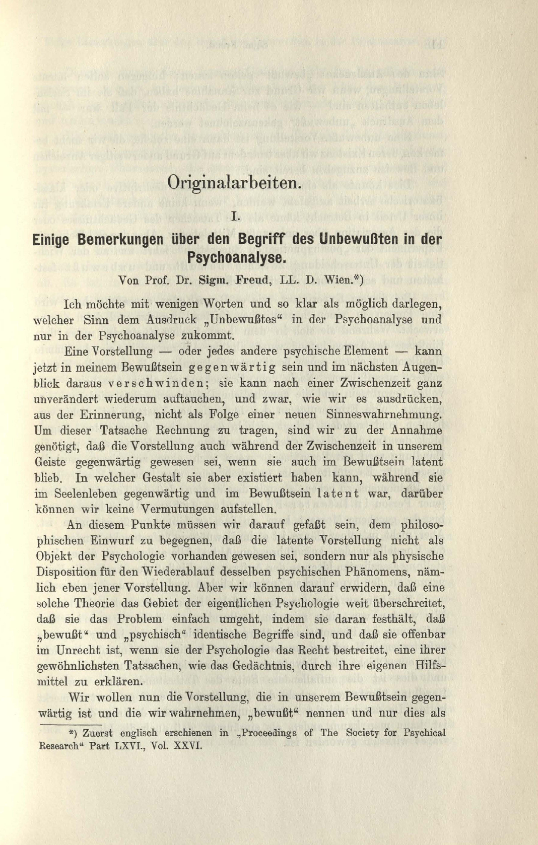 Einige Bemerkungen über den Begriff des Unbewuften in der Psychoanalyse. 119